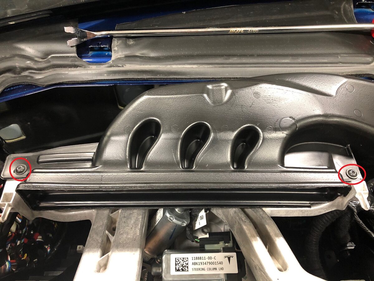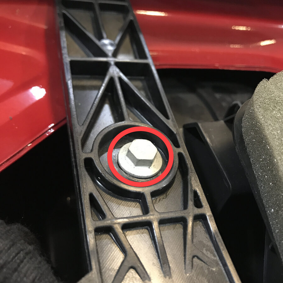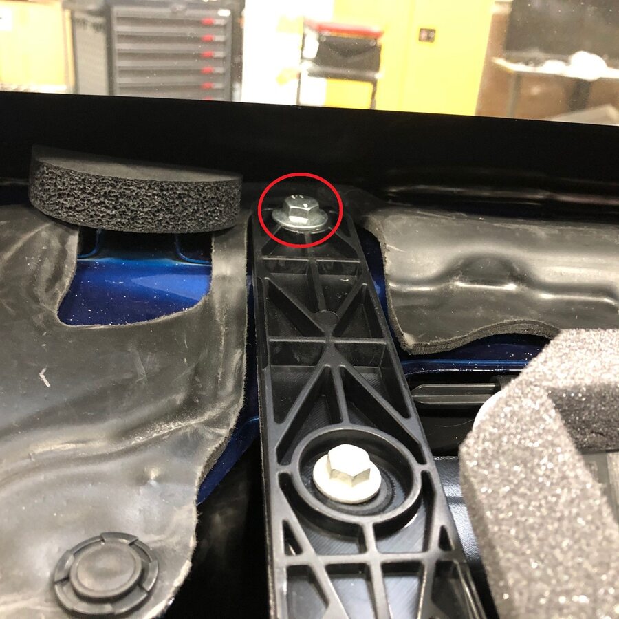 Remove bolts securing frunk assembly
