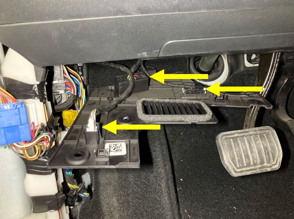 Note3x tabs, 1x Ethernet connector, 1x puddle light connector, APAC specific vehicles have an additional OBDII connector