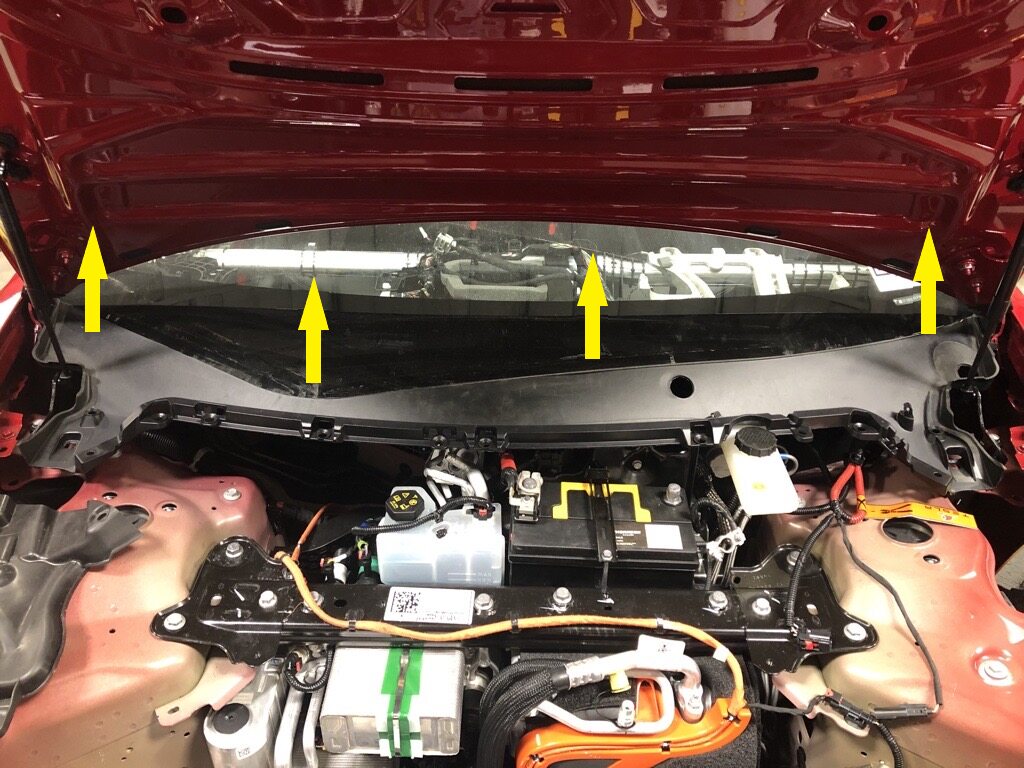 Note12x clips, Make sure frunk assembly is fully seated onto clips, Number of clips may vary on older vehicles