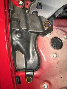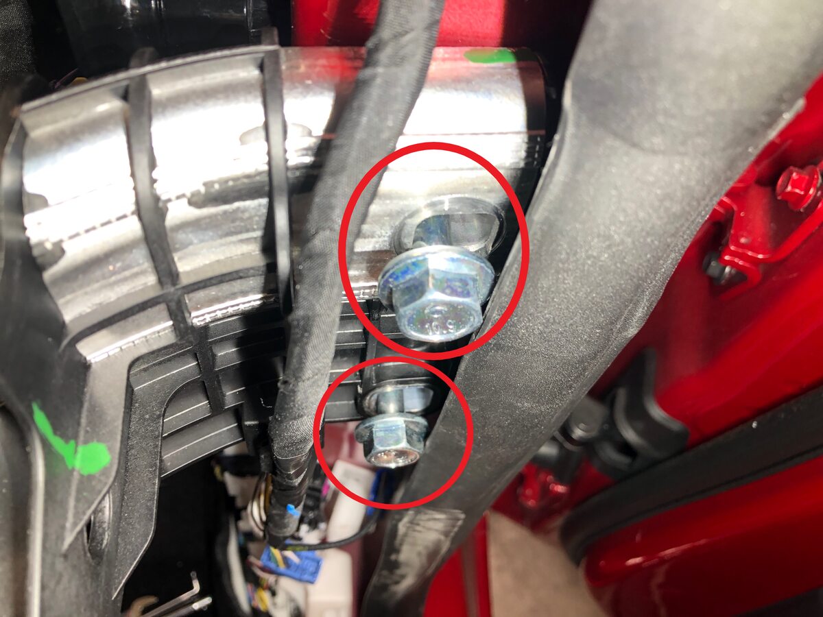 Note7x bolts, 10mm, 5 Nm, Lift up RBN covers to access upper fasteners, Newer vehicles may not be equipped with covers