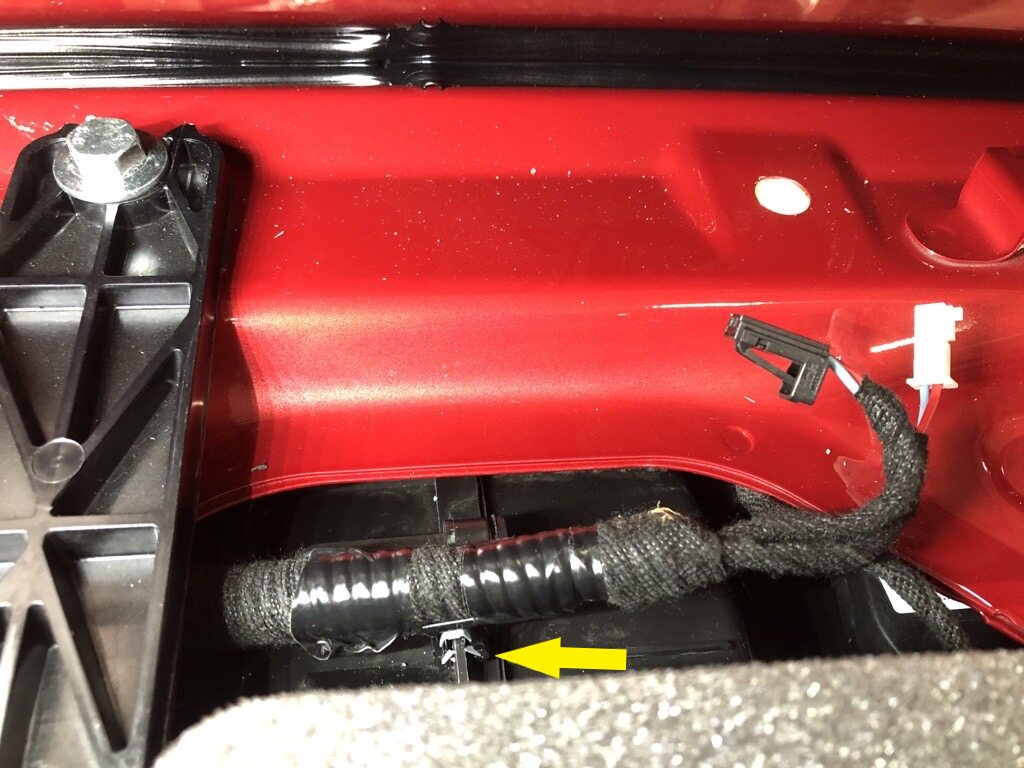 Note4x clips, 1x connector, Frunk safety switch, 3x guide tabs, Align 3x tabs then push downward to secure clips