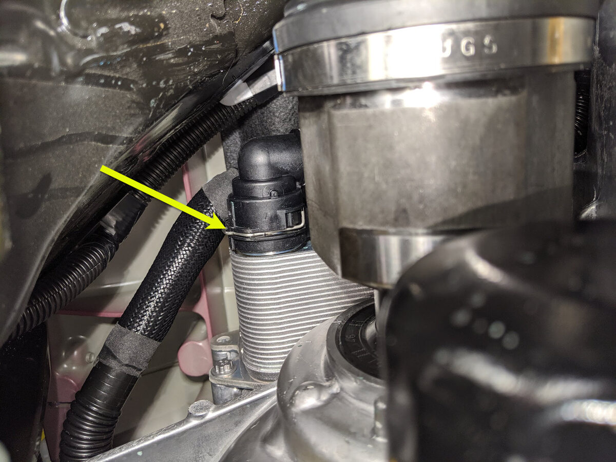 Note1x spring clip, 2x plugs, Perform push-pull-push test to make sure hose is fully engaged, Use shop towel to clean any coolant residue if necessary, Loss of coolant greater than 1L requires coolant vacuum fill
