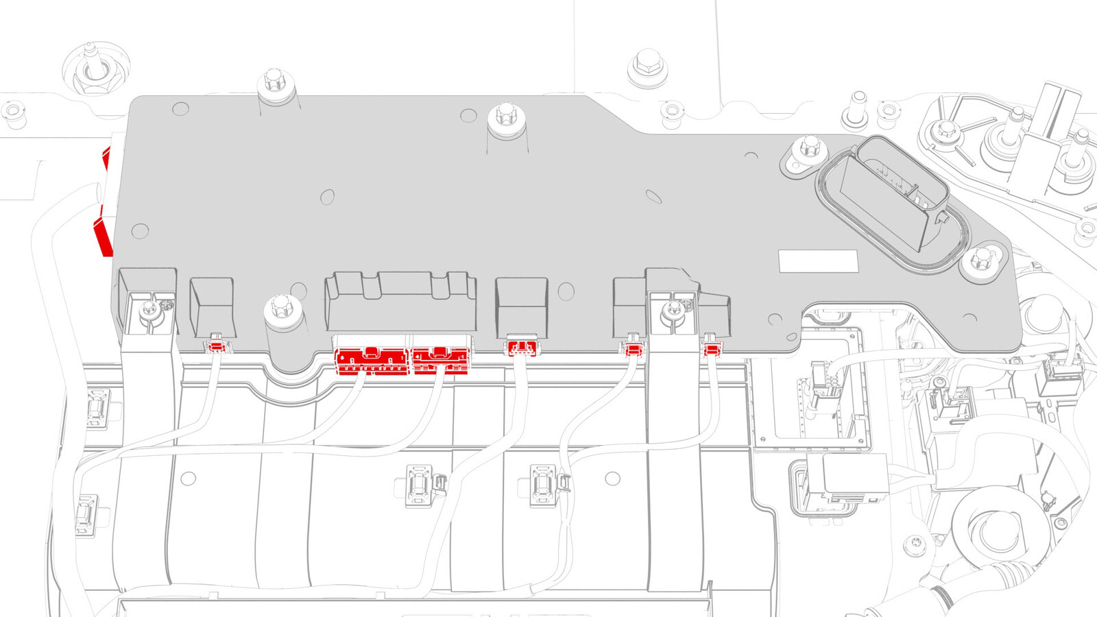 2 Nm (1.5 lbs-ft) - Connect the ancillary bay harness to the high voltage controller connectors.