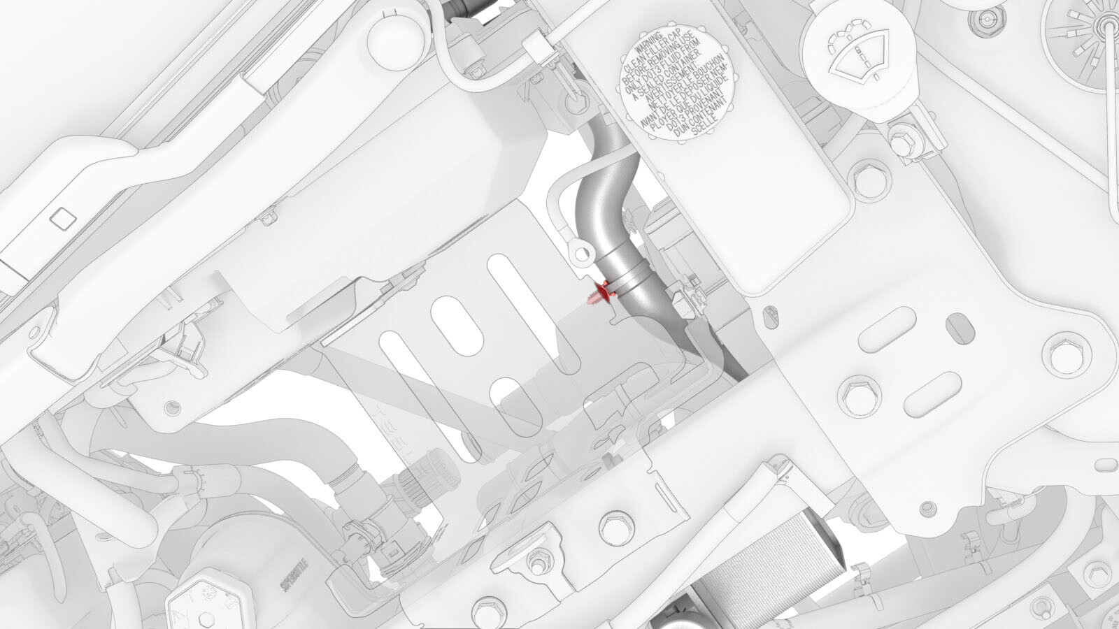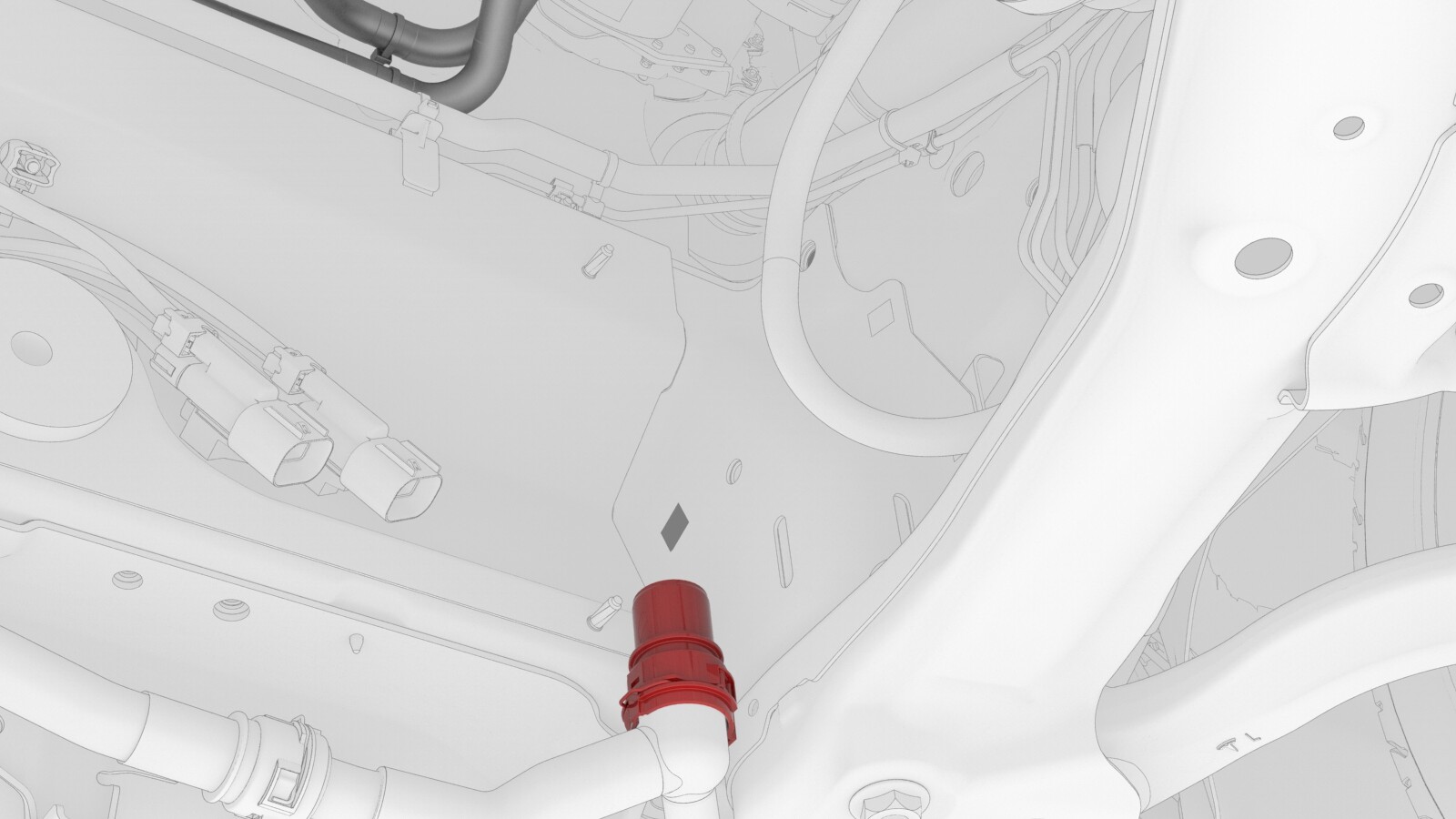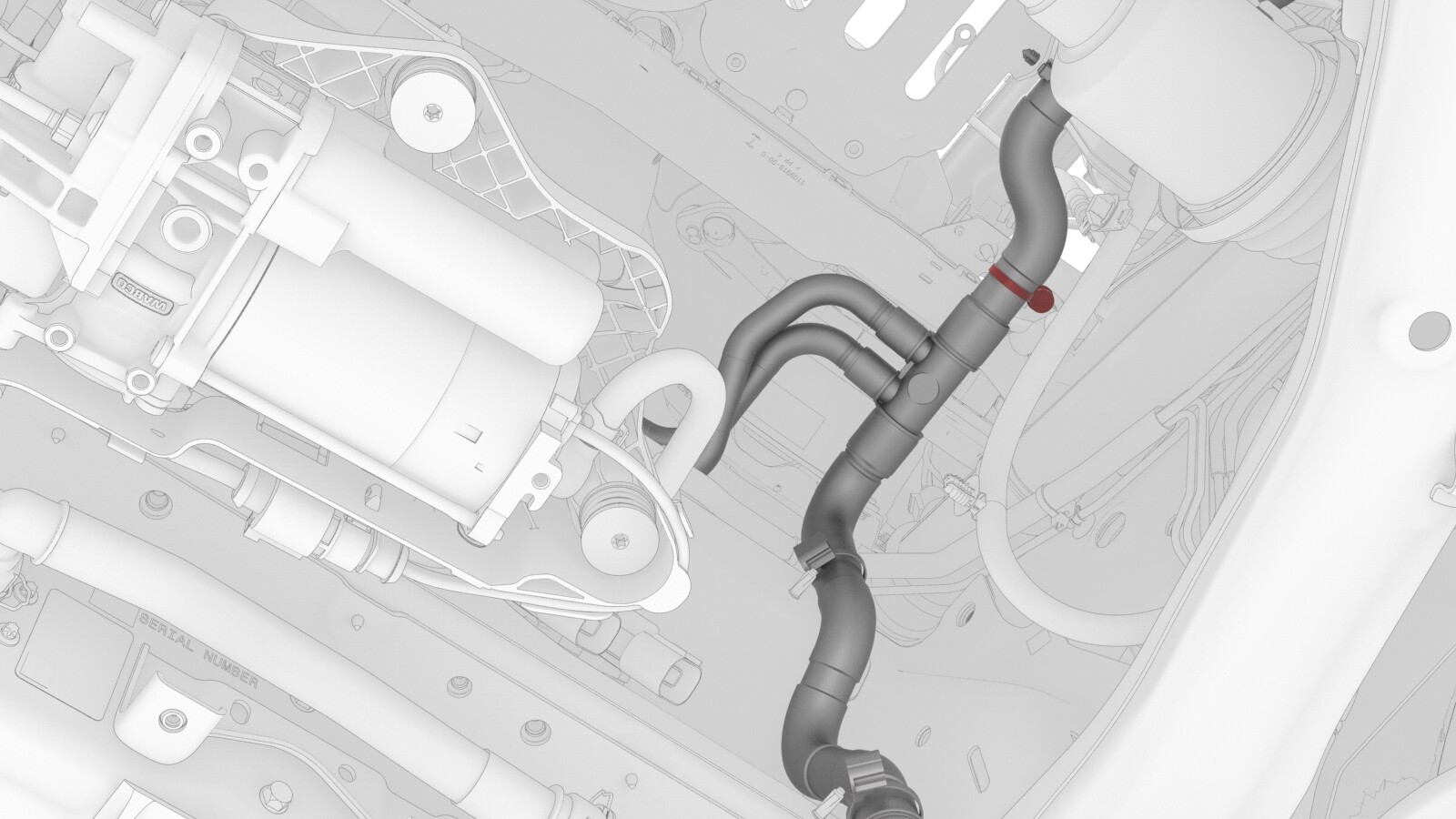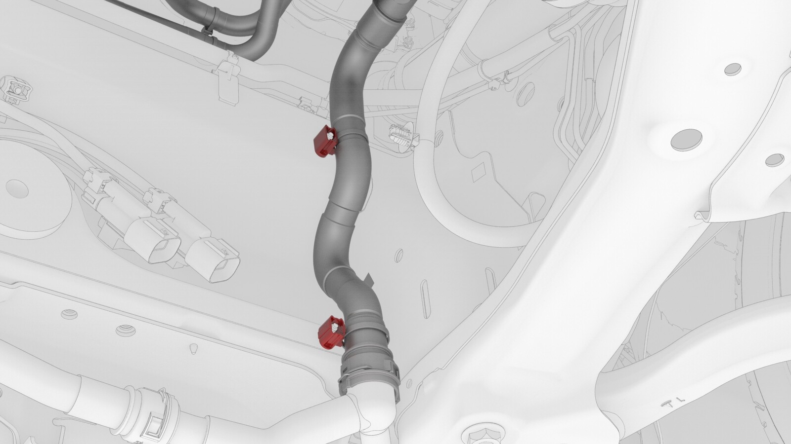 - Release the clip that connects the RH car computer coolant hose to the car computer coolant port, and then disconnect the hose.