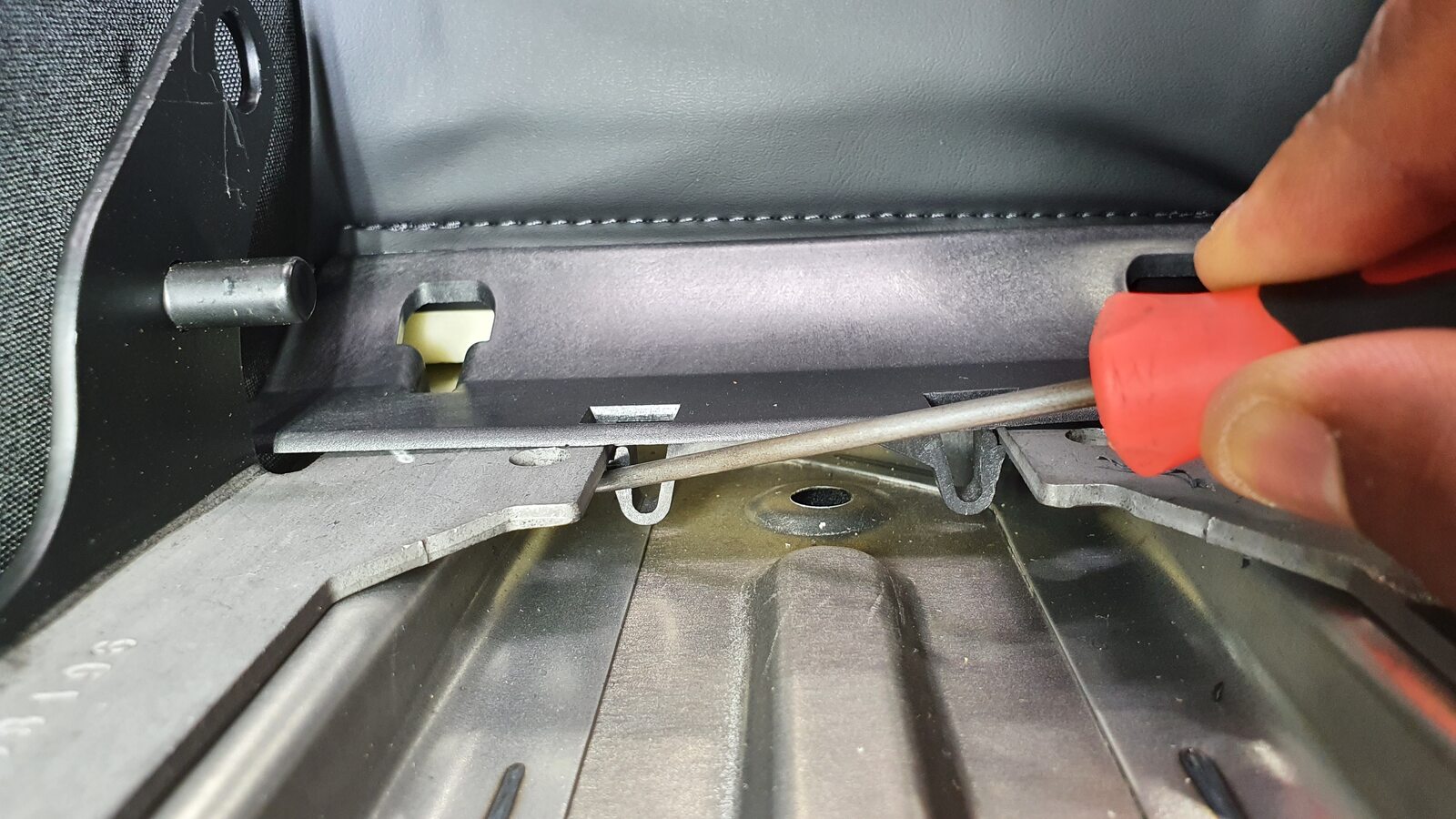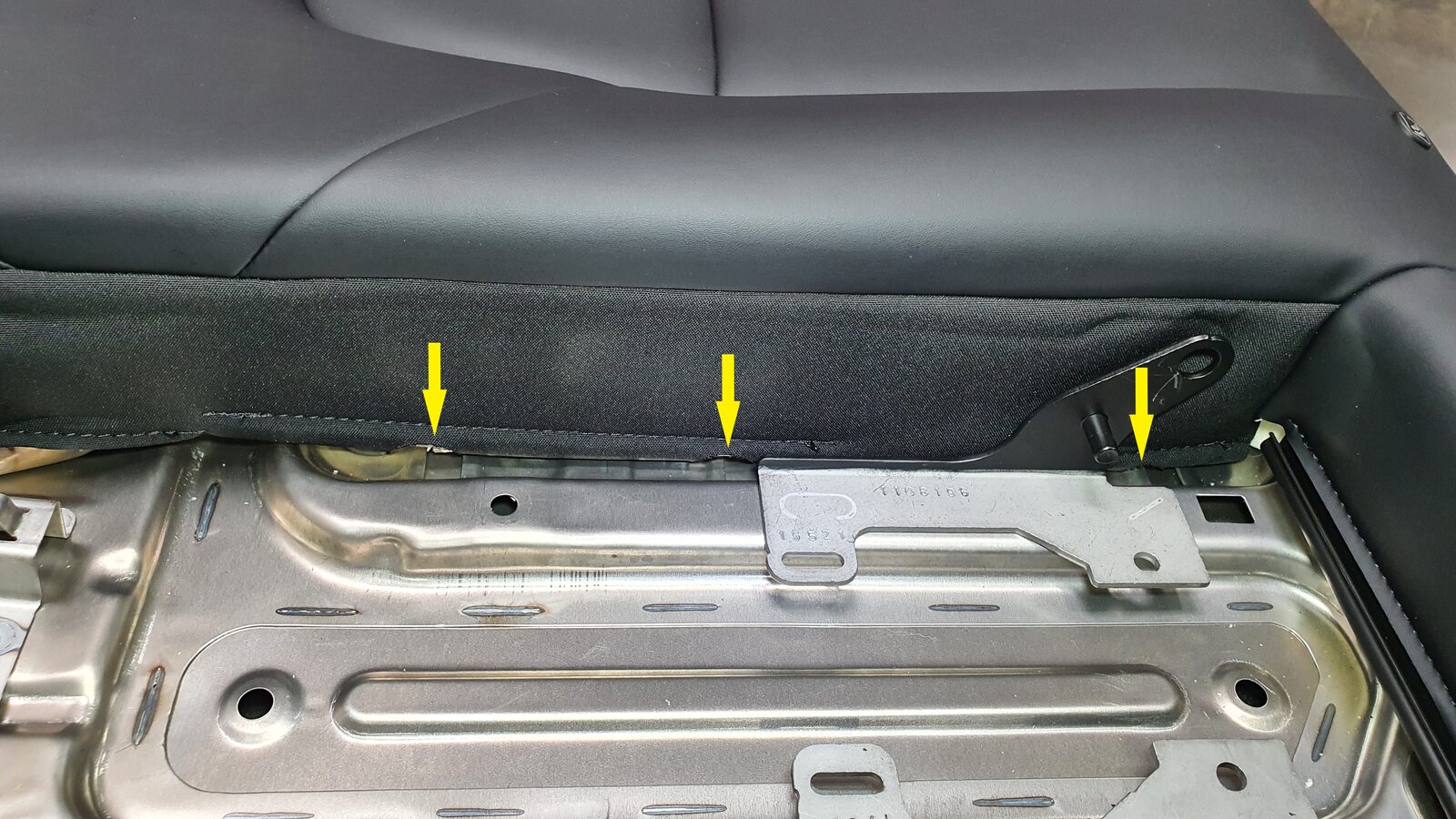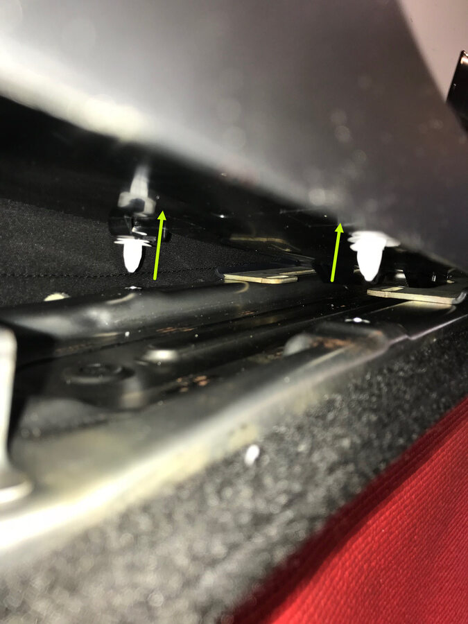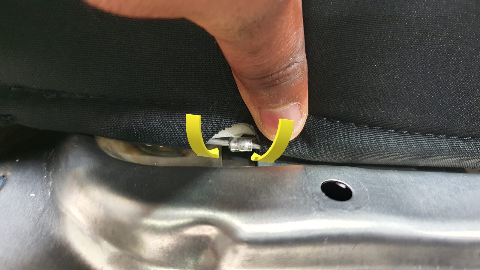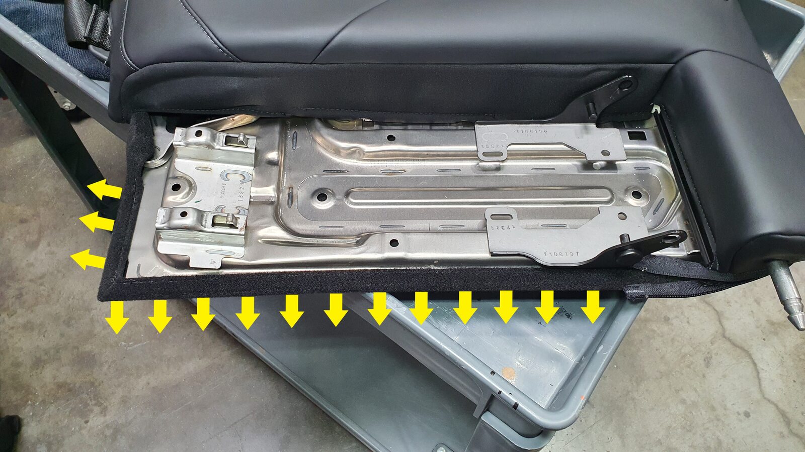 NoteUnhook the long metal piece from the tabs to clear seat cover material