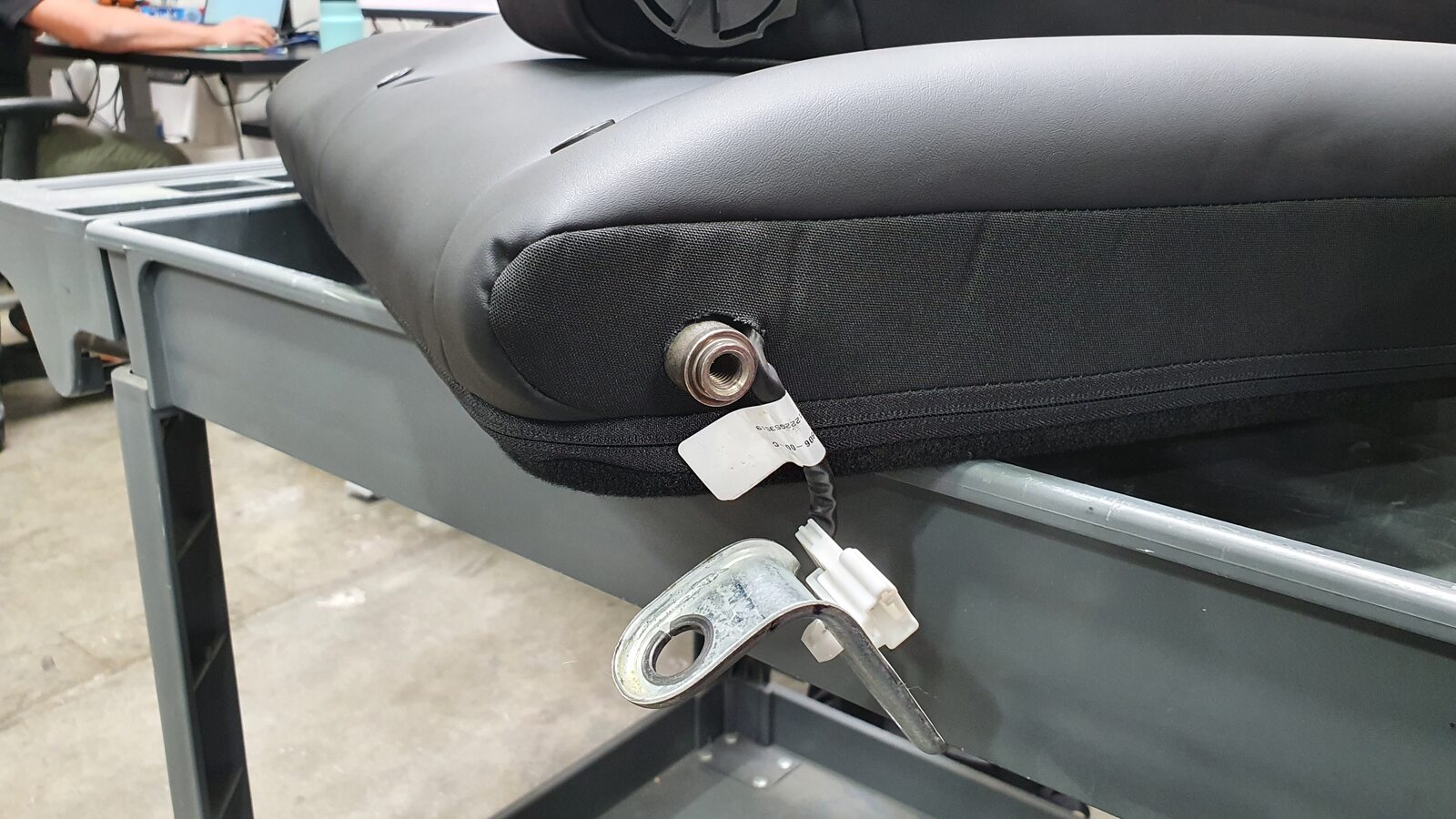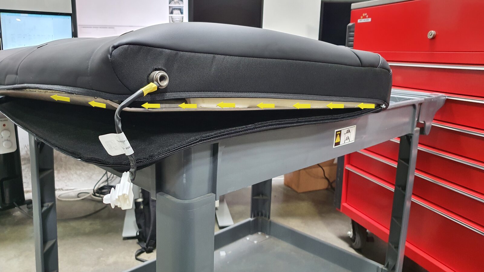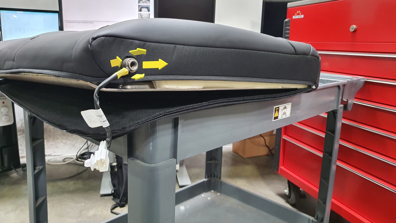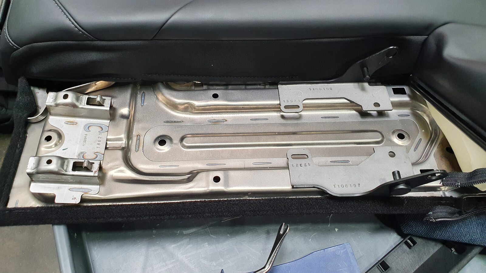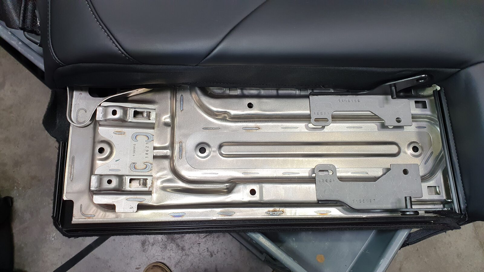 NoteUnhook the long metal piece from the tabs to clear seat cover material