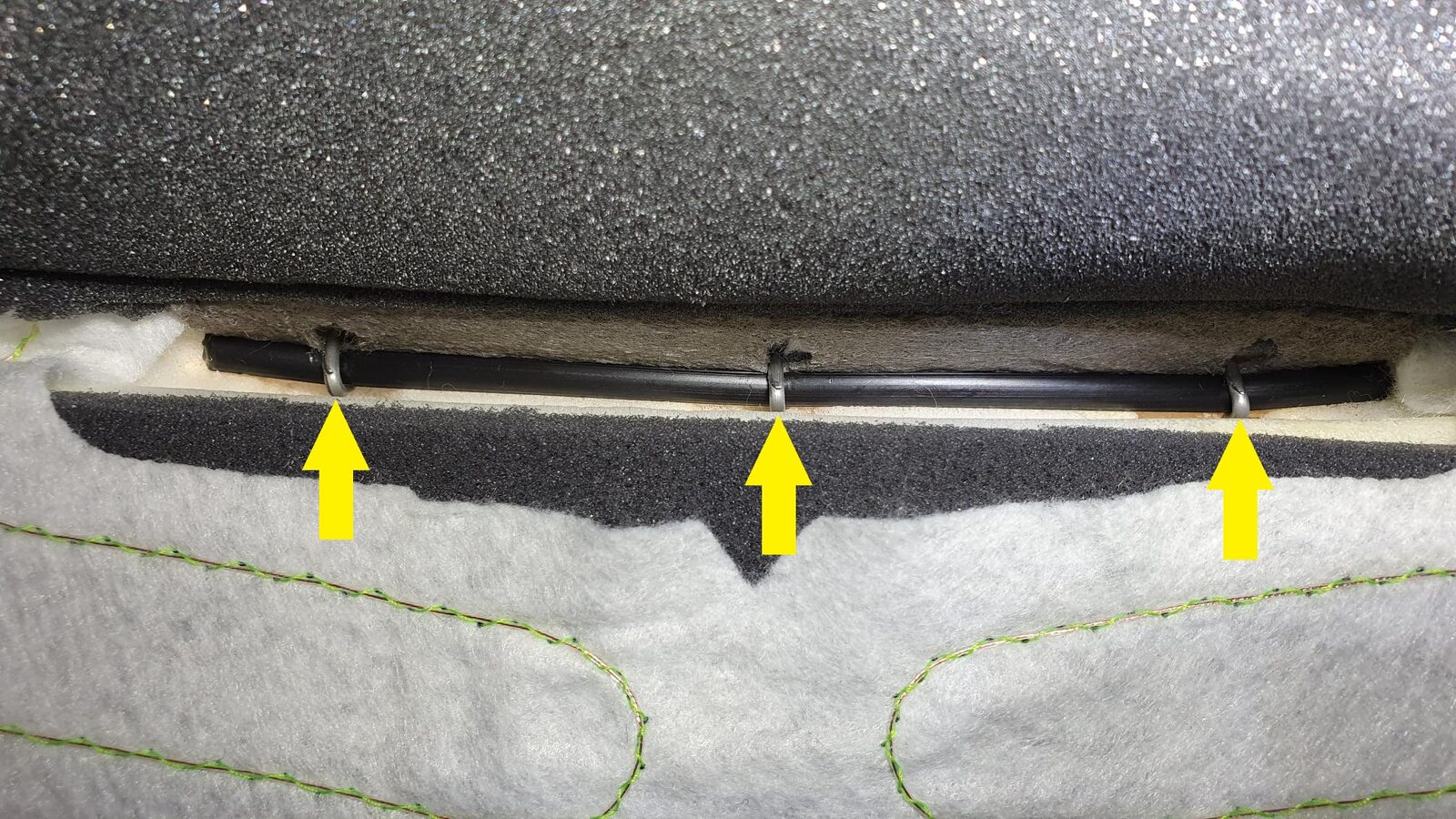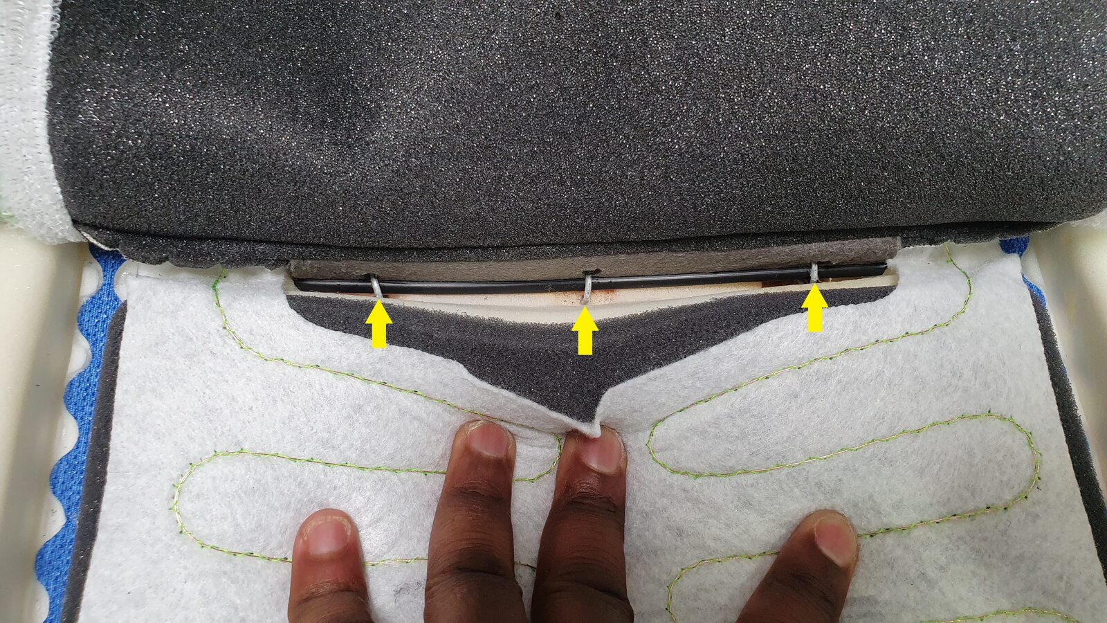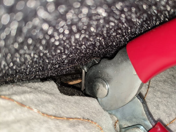 Note3x hog rings, Push down on foam to allow access to rings, Verify any excess pieces have been removed from foam
