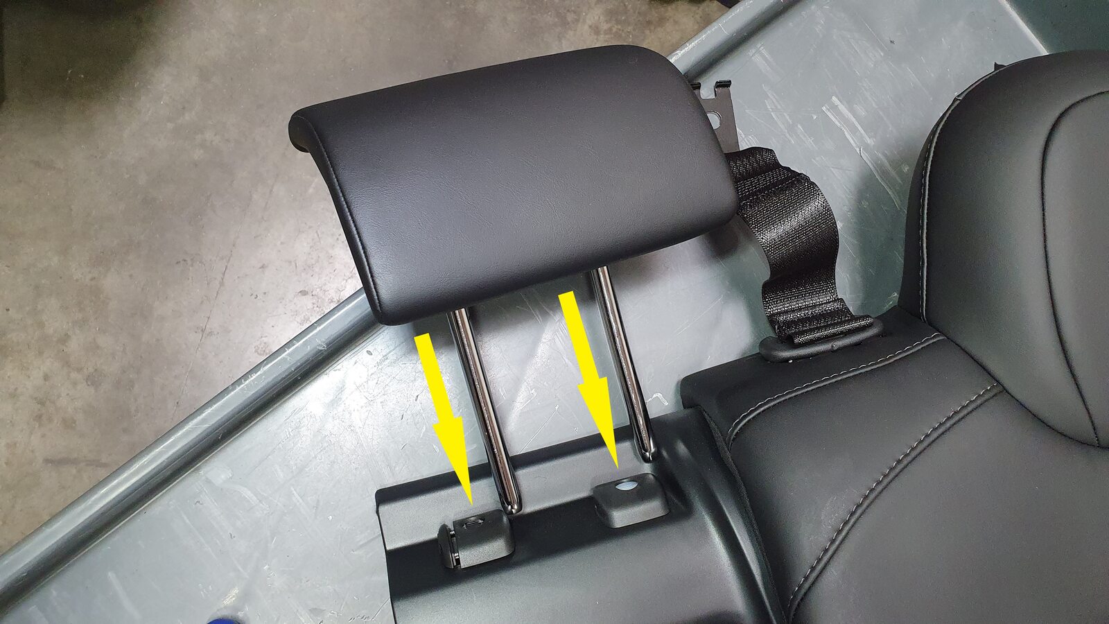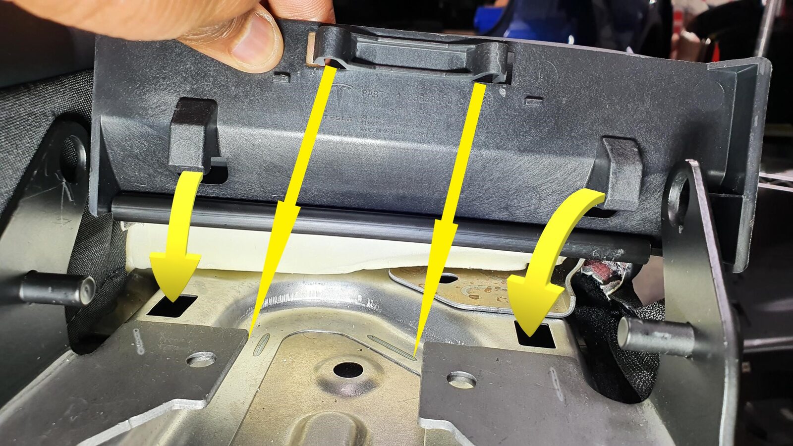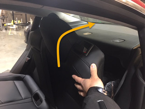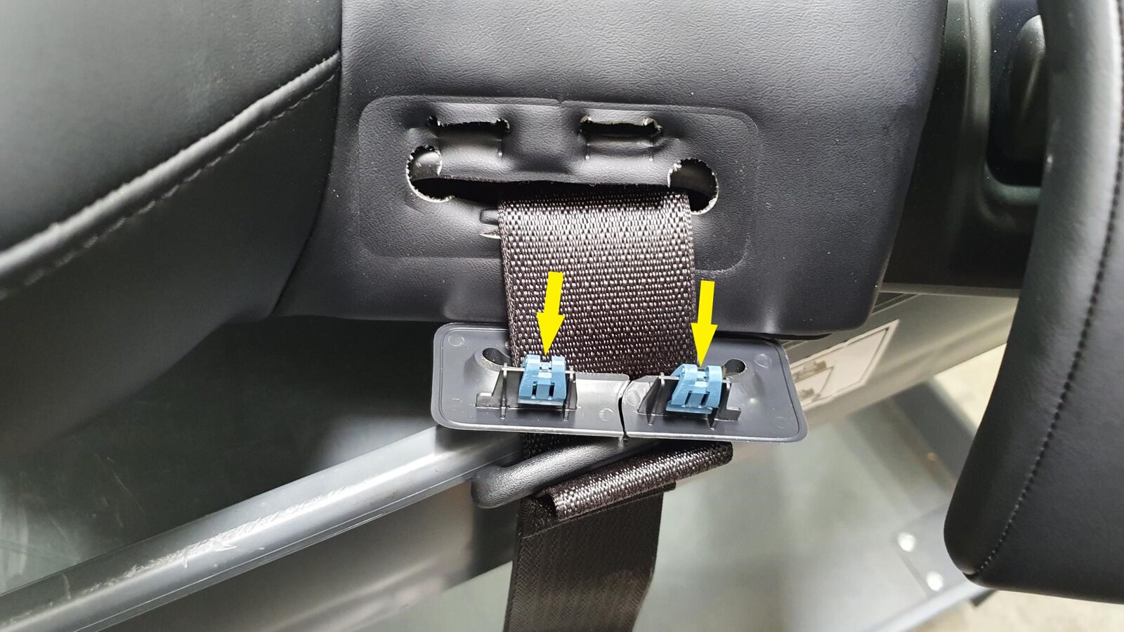 - Set the 2nd row center seat belt anchor onto the 2nd row LH inner penthouse rail, with the belt to the RH side.