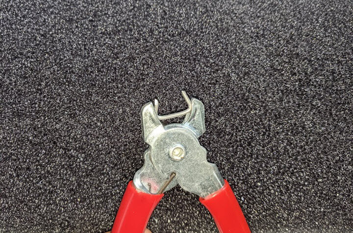 Note3x hog rings, Push down on foam pad to allow access for clamping, Place hog ring into pliers prior to installation, Start with center ring and work your way out