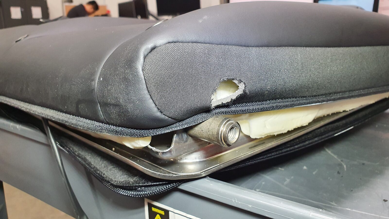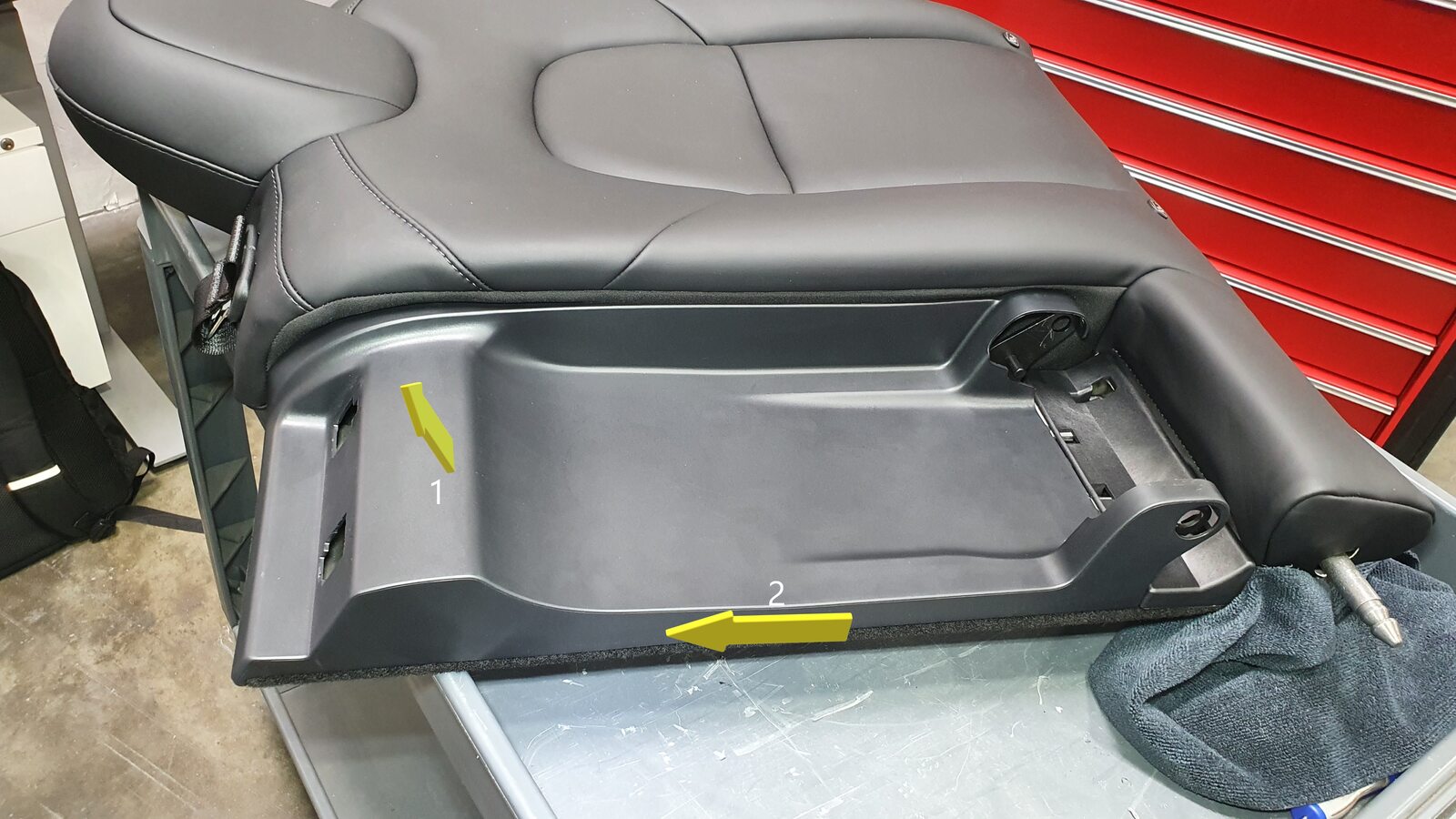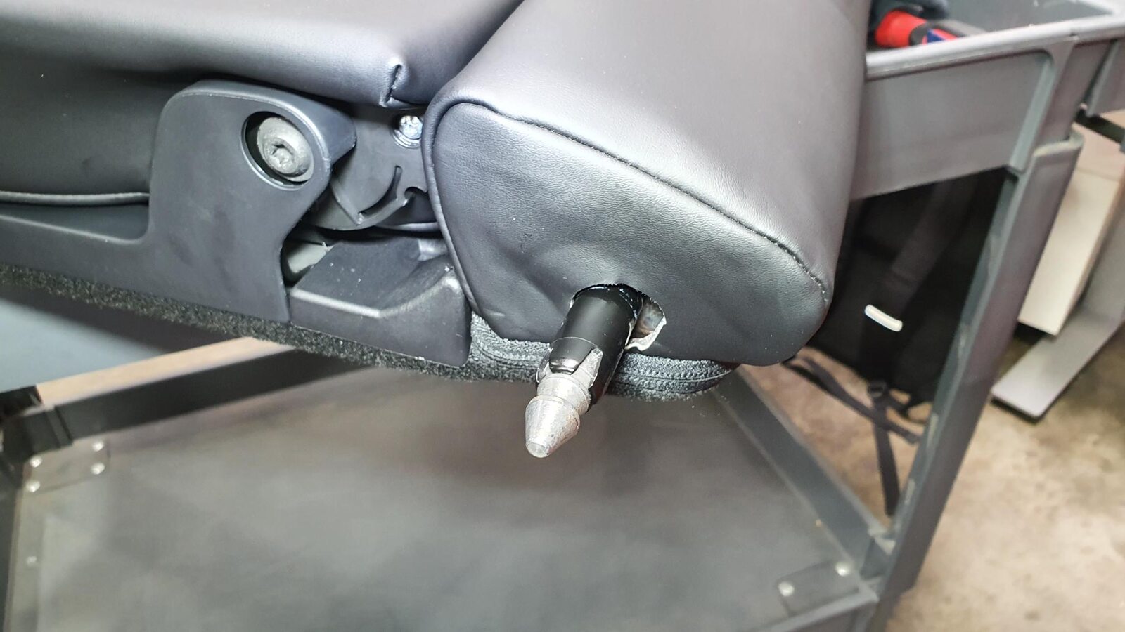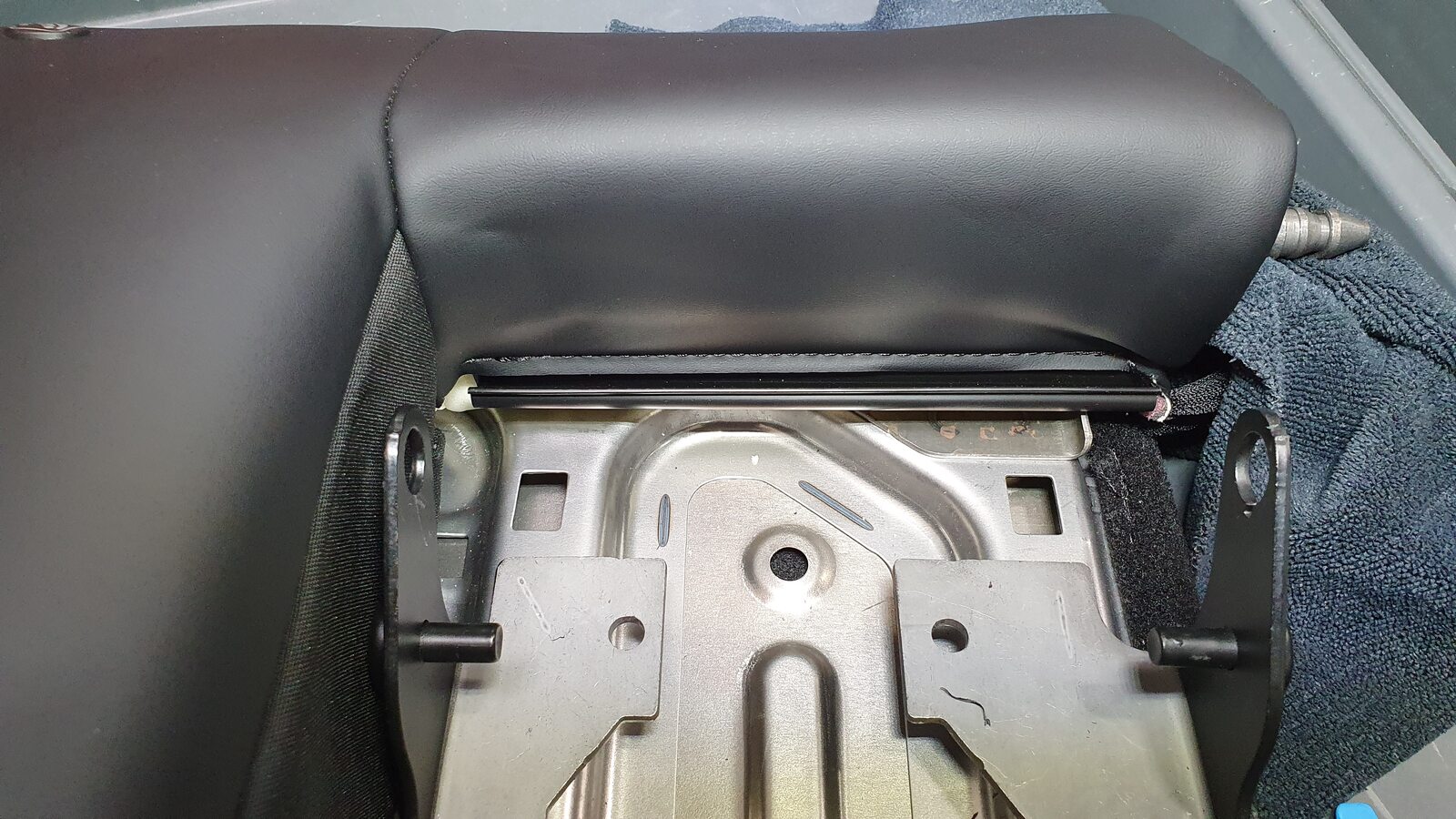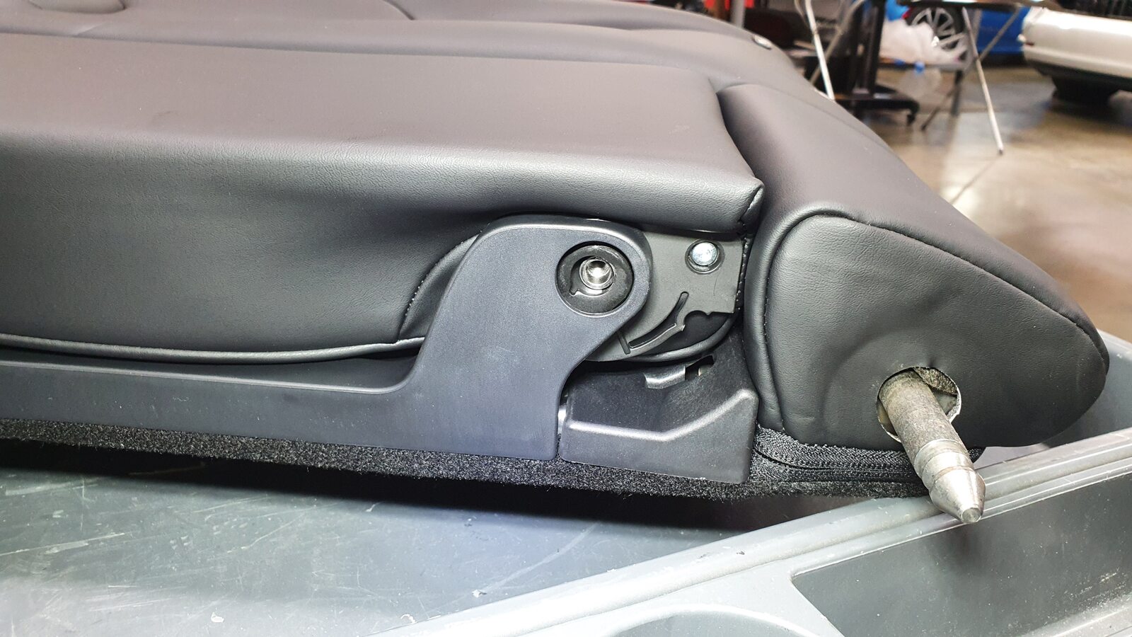 - Remove 60 seat back by lifting up on LH side and pulling inner pivot out of 40 seat back and set onto padded work surface