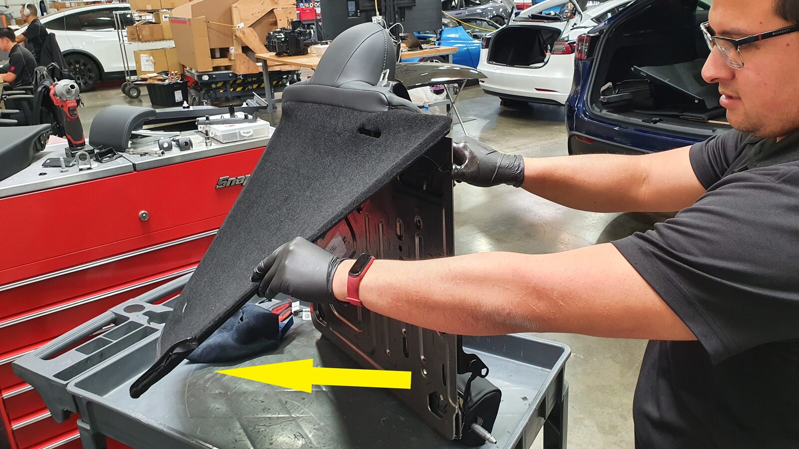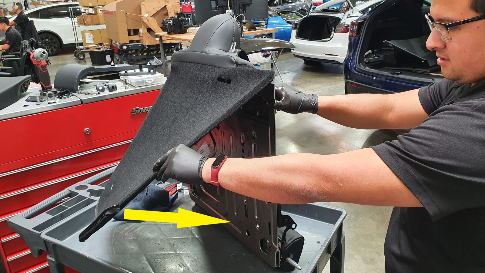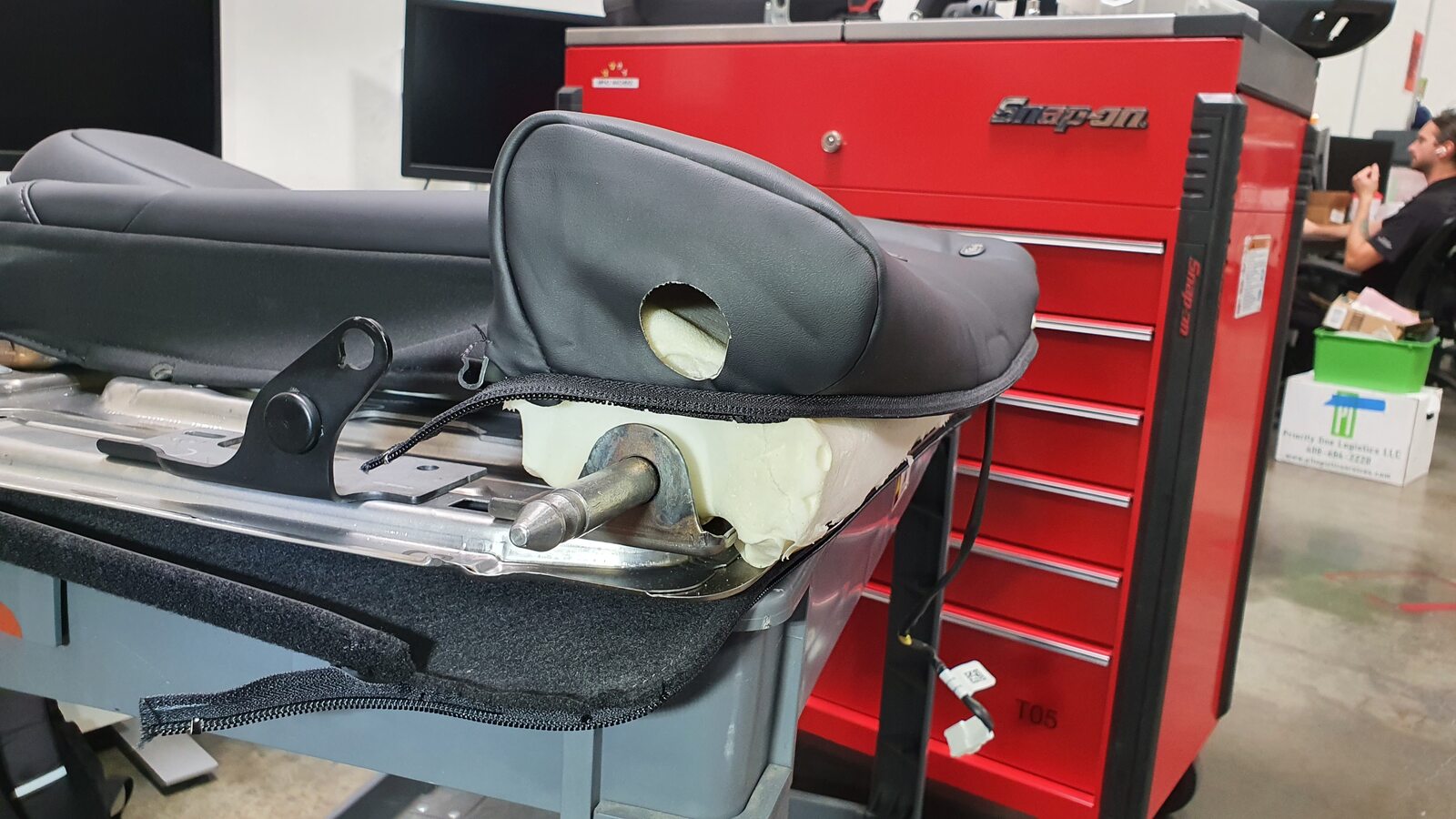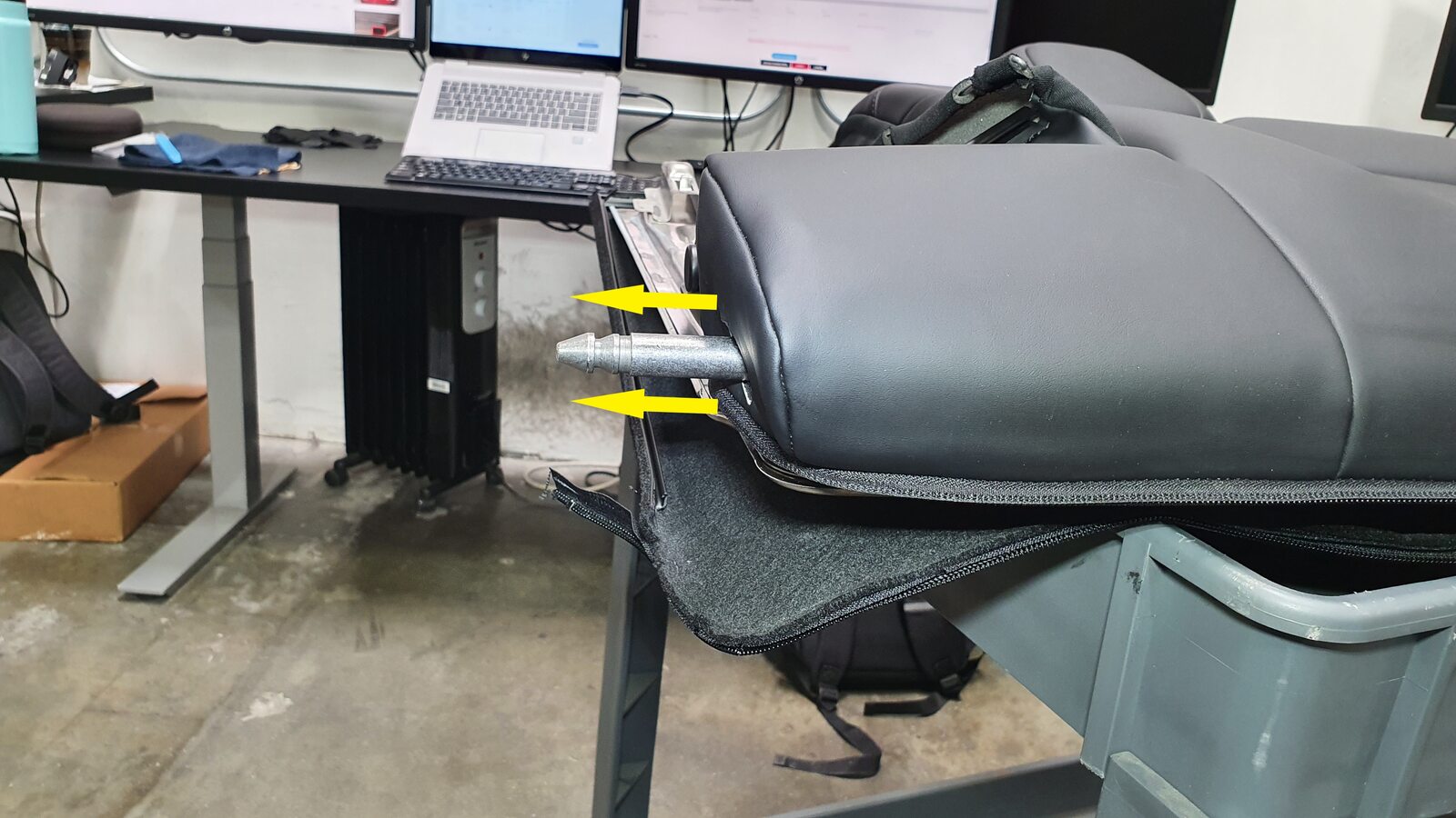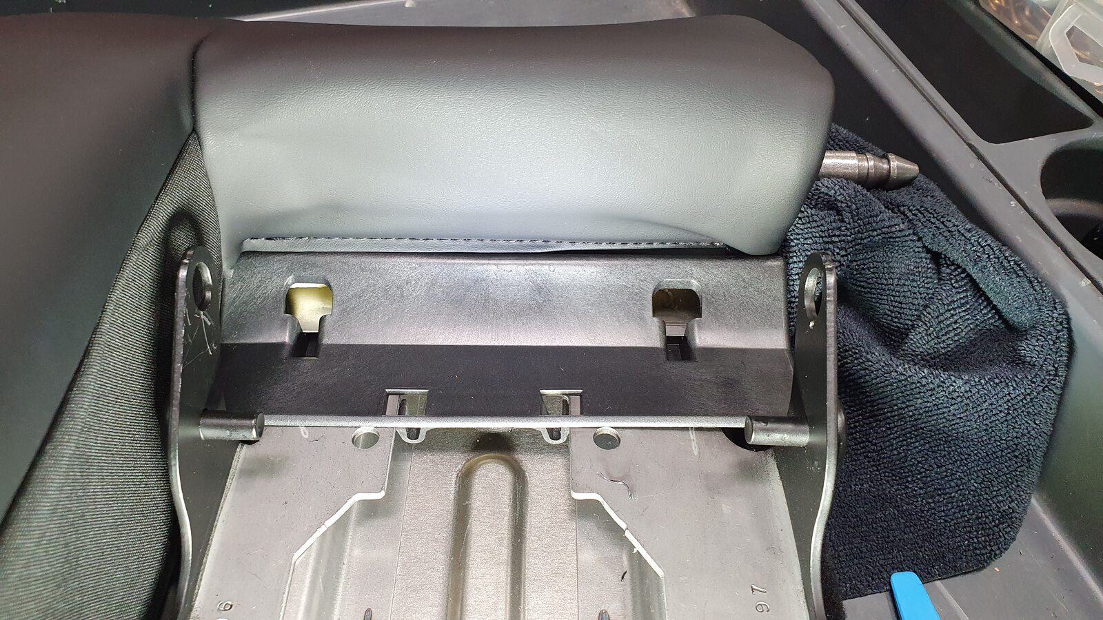 - Remove 60 seat back by lifting up on LH side and pulling inner pivot out of 40 seat back and set onto padded work surface