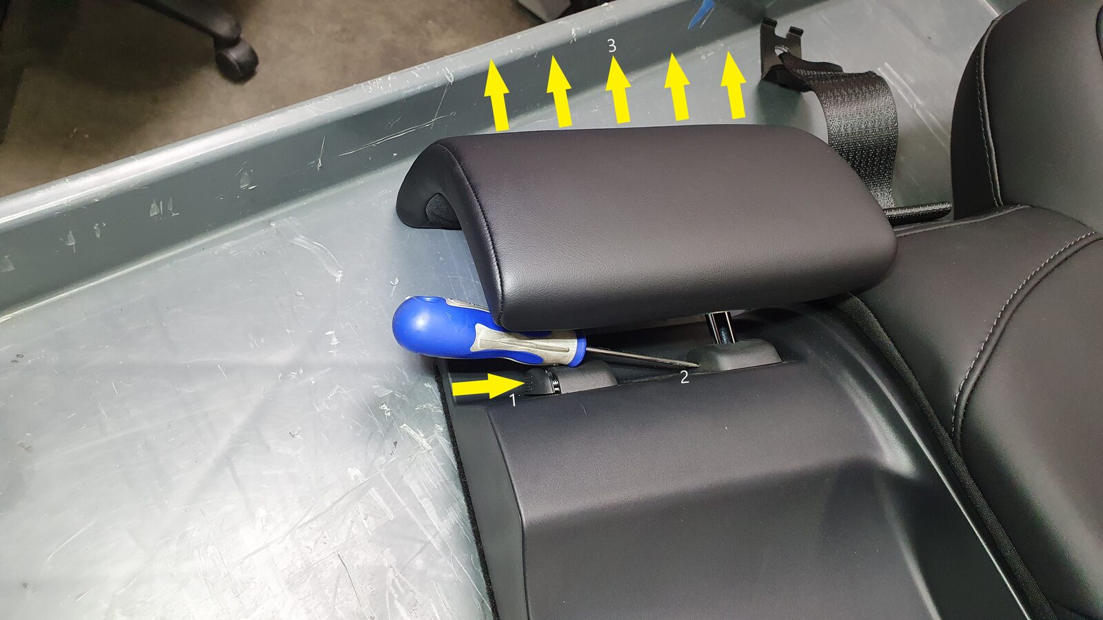 NoteWatch out for the plastic piece in the photo when removing the armrest it may or may not fall off if it does return it to it's original position