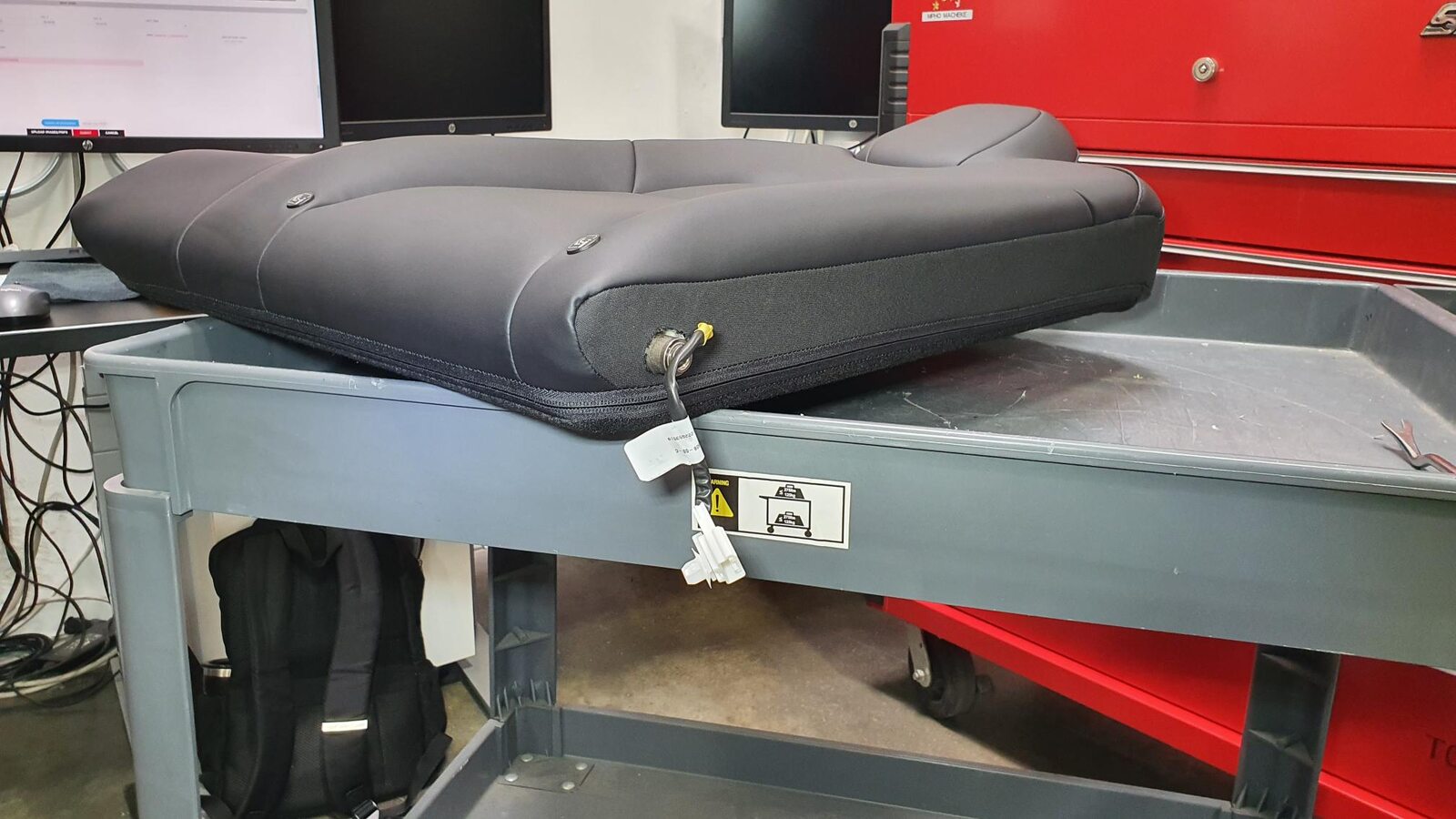 Remove 2nd row seat cushion and disconnect harness