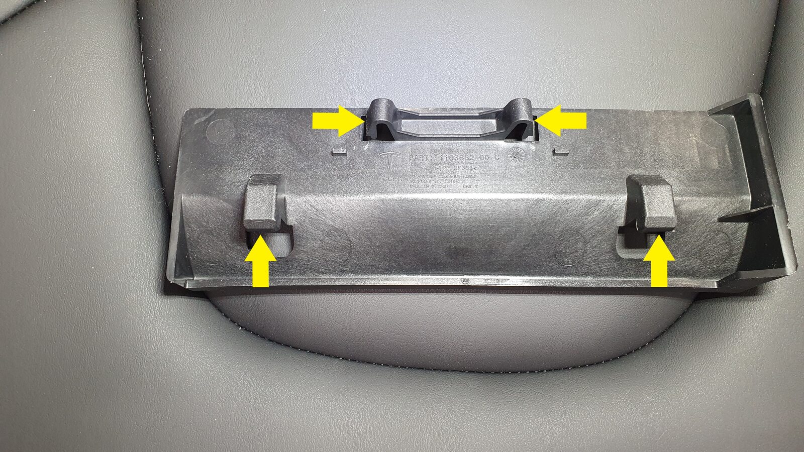Note3x clips, 2x tabs, Pull up by headrest guides to release clips then slide upwards off to clear tabs and remove closeout panel