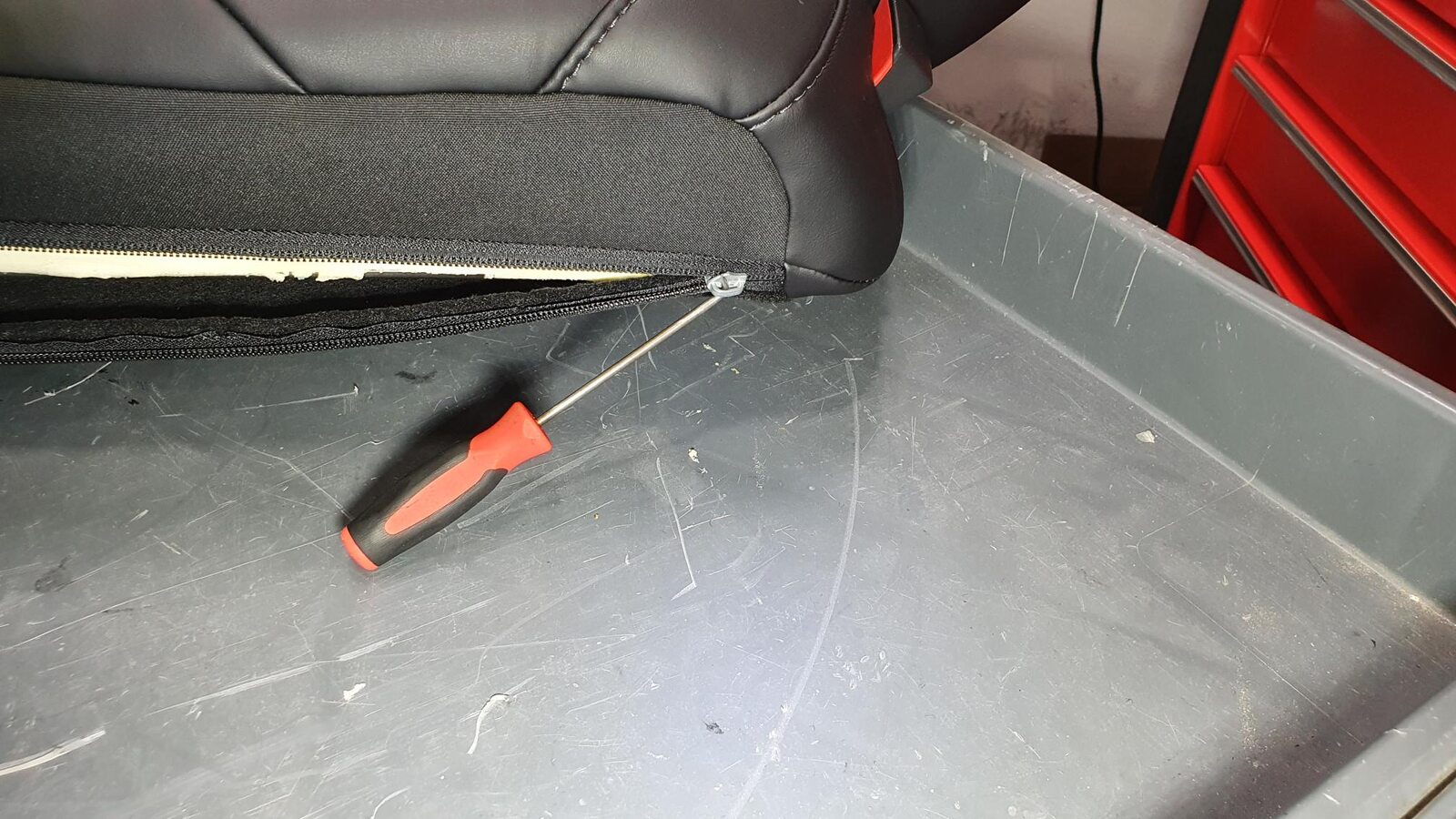 - Unzip 2nd row 60 seat back trim cover