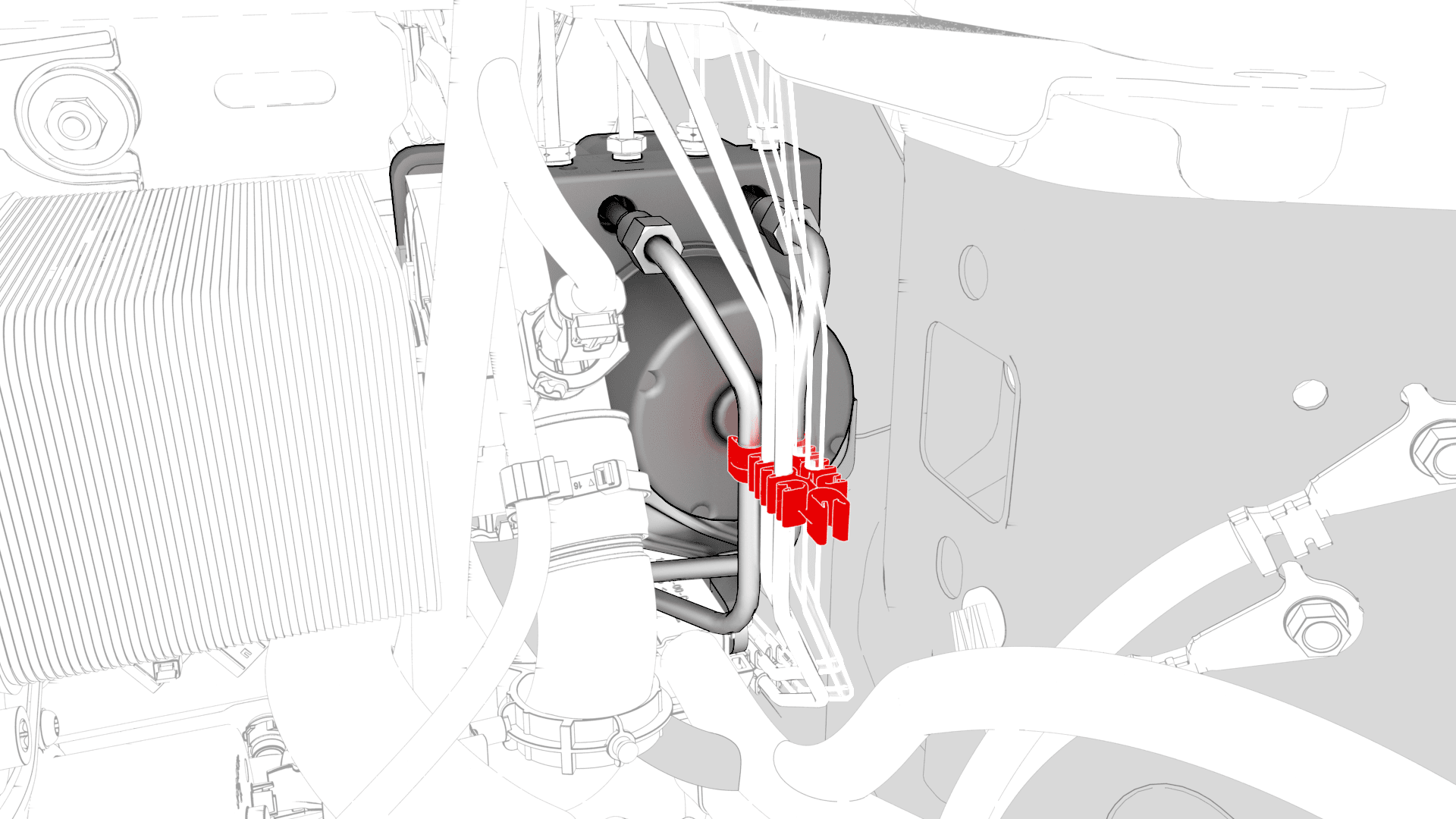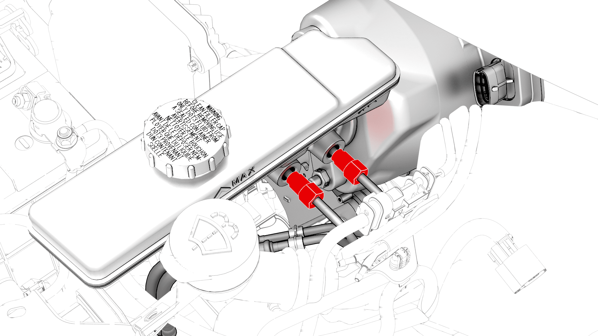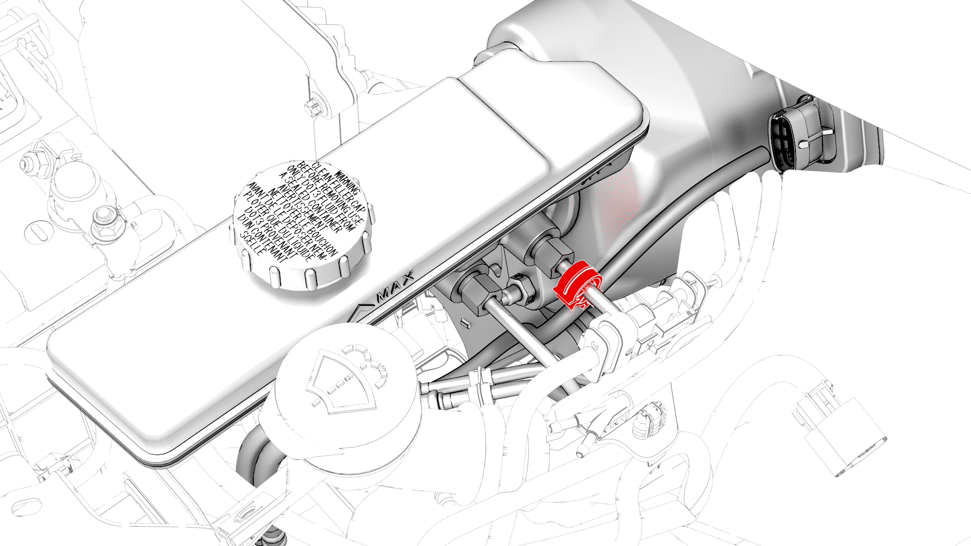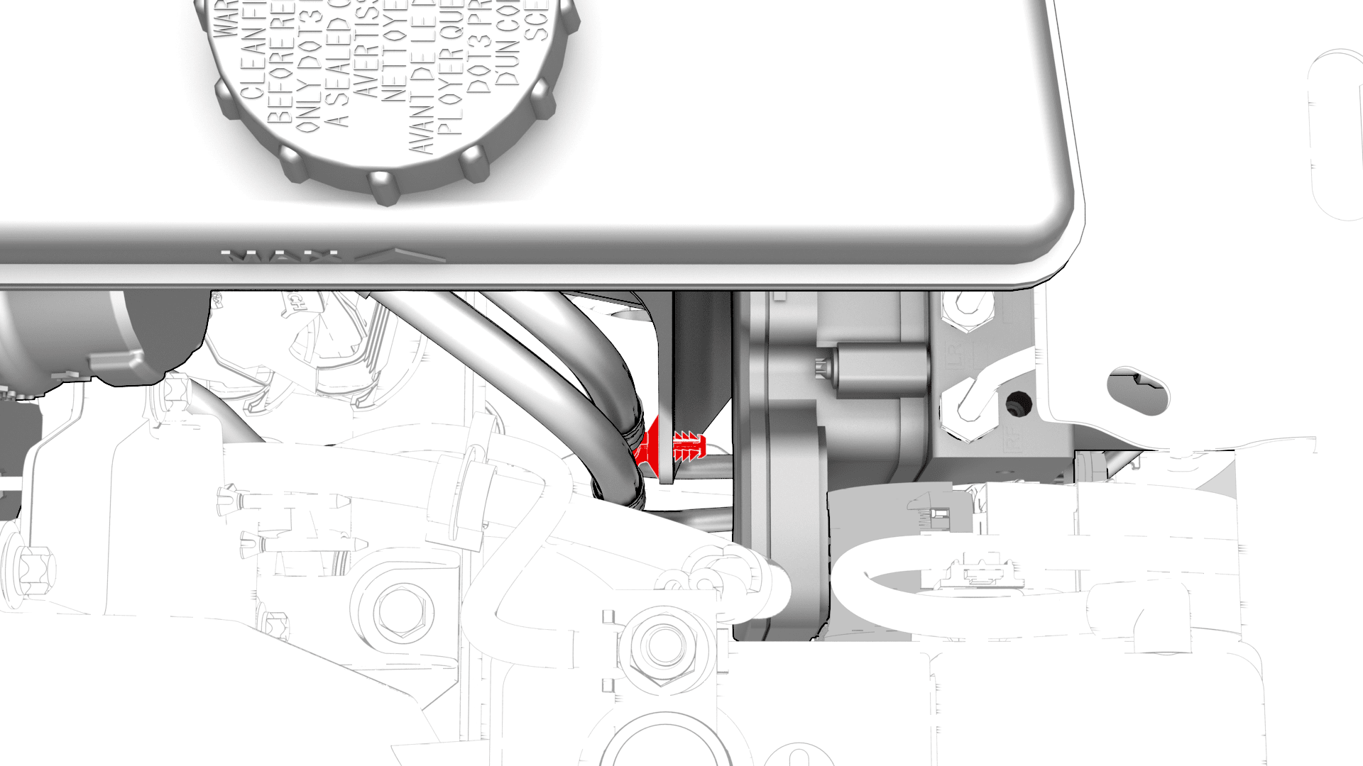 - Release the clip that attaches the electrical harness to the brake line at the master cylinder.