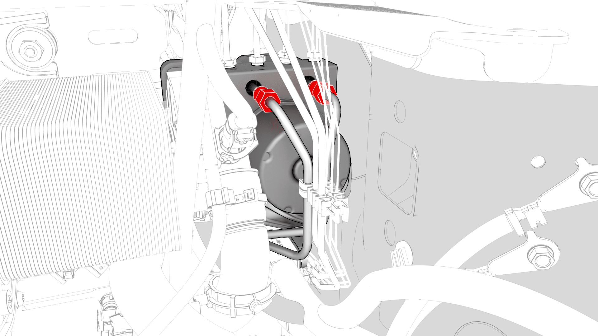 - Bring the brake lines to the ABS unit and master cylinder.