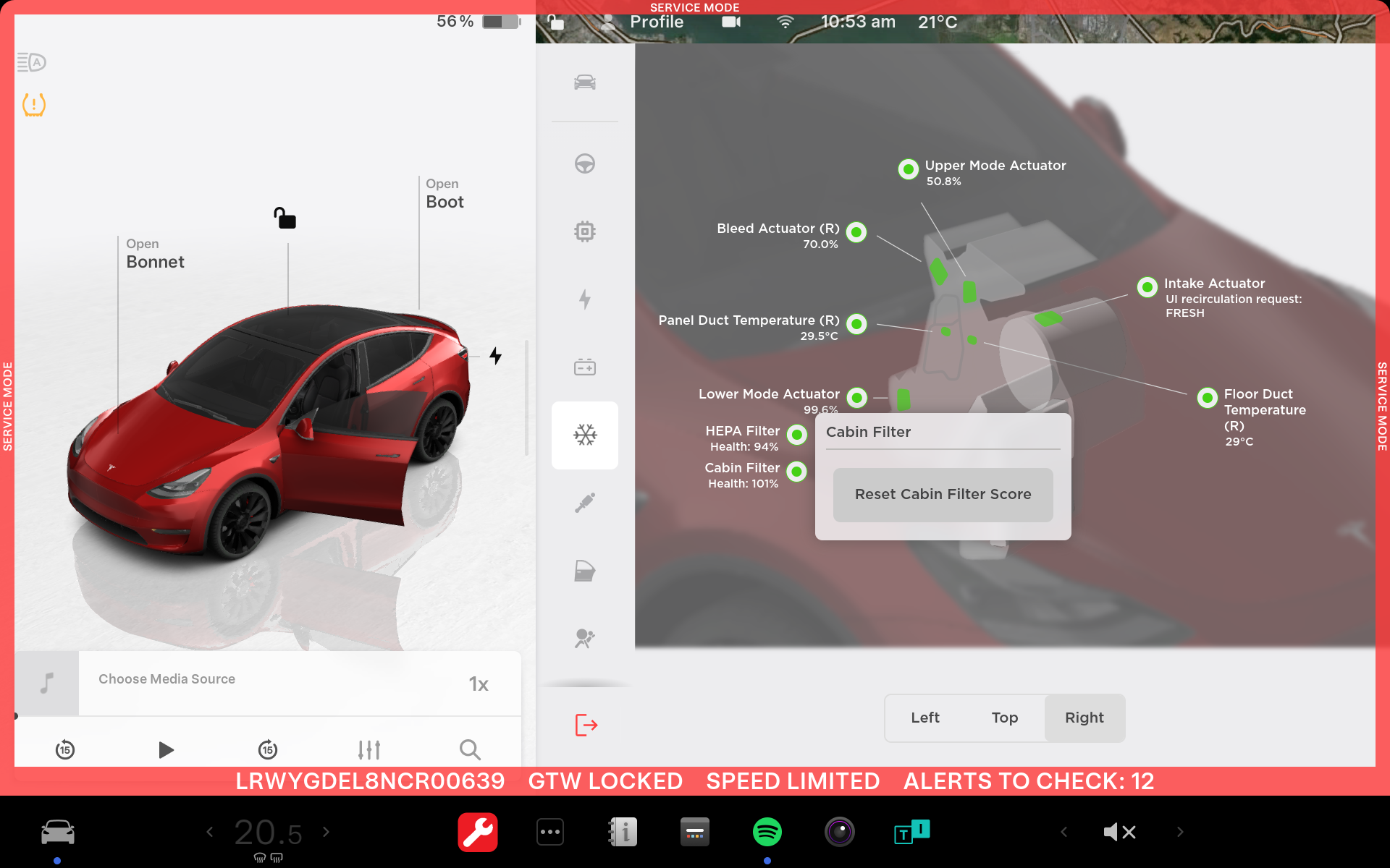 - If the vehicle software version is older than 2024.14, the cabin filter health score does not need to be reset. Skip to the next step in this procedure.