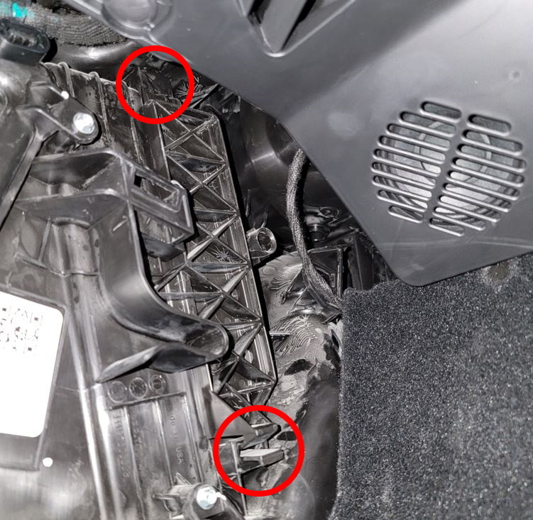 - Use the clip tool to remove tabs Release RH footwell assembly from IP.