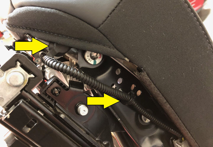 - Remove the bolts that attach the driver seat tilt motor to the seat frame.
