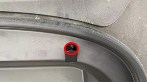 | Bolt that attaches the LH bag holder hook to the frunk assembly |
