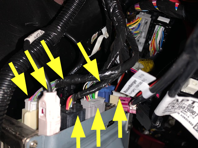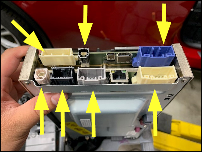 - Release the connectors (x7) from the RH side of the car computer, and then remove the car computer from the vehicle.