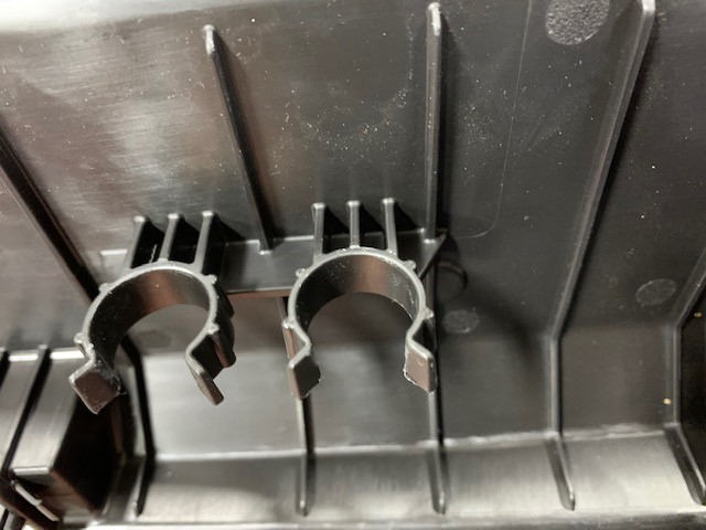 - Use needle nose pliers to pinch the release tabs on the harness guide clip, and then release the clip.