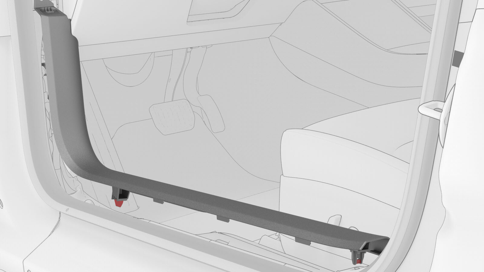 - If reusing the same LH lower A-pillar trim, install new clips onto the trim.