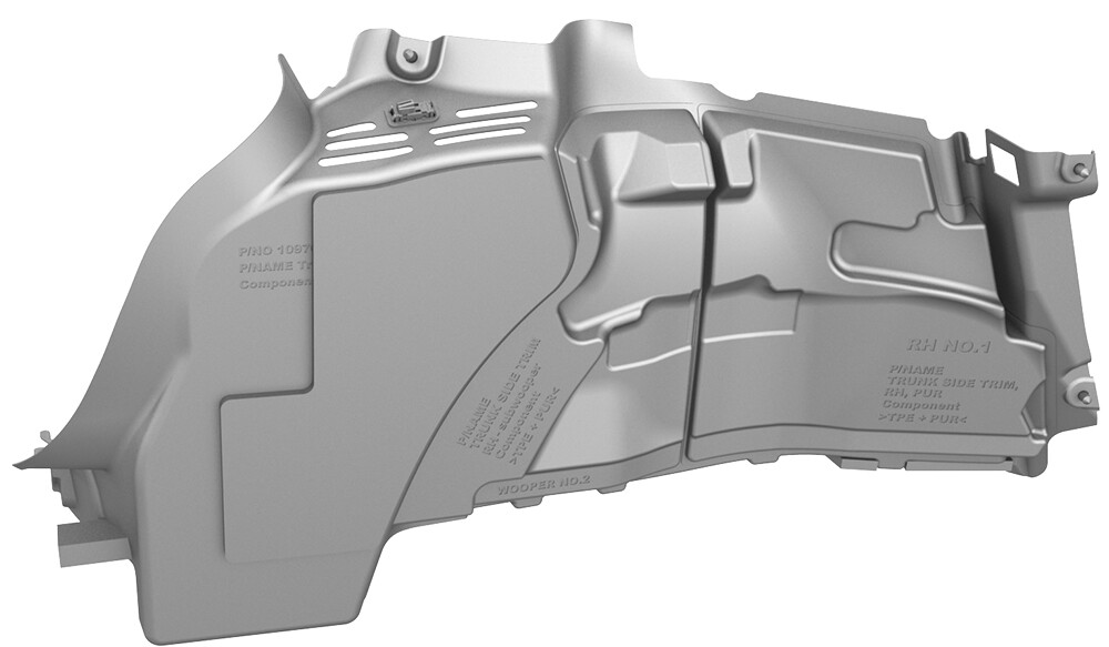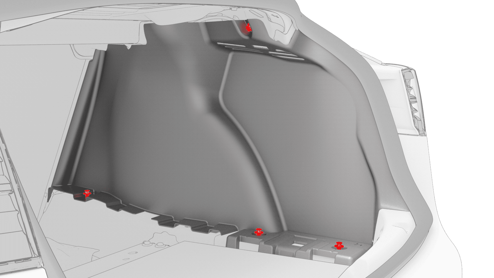 - Remove the push clips that attach the RH trunk side trim to the body, and remove the side trim from the vehicle.