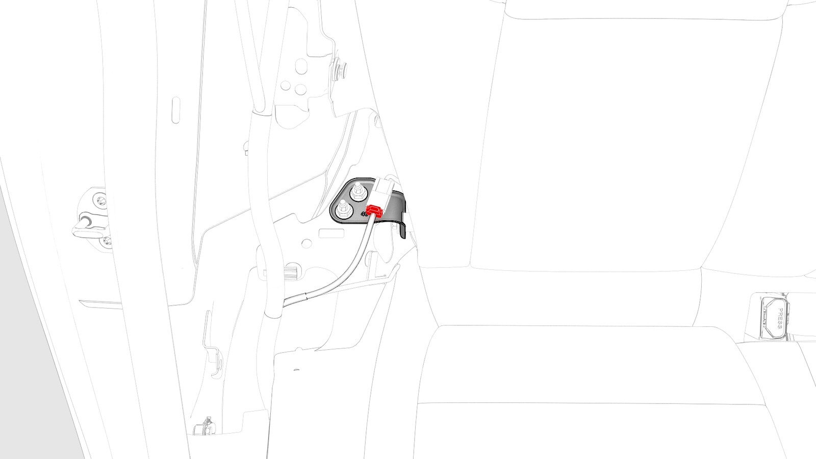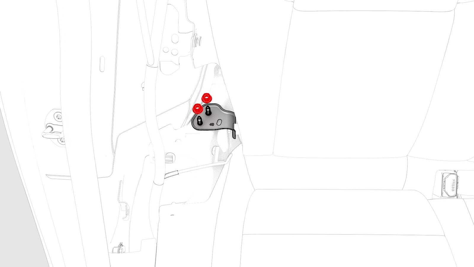 - Remove the RH 2nd row seat side bolster. See Bolster - Side - Seat - 2nd Row - LH (Remove and Replace).