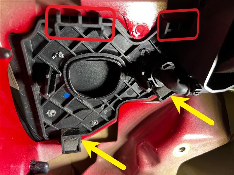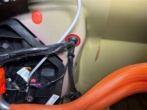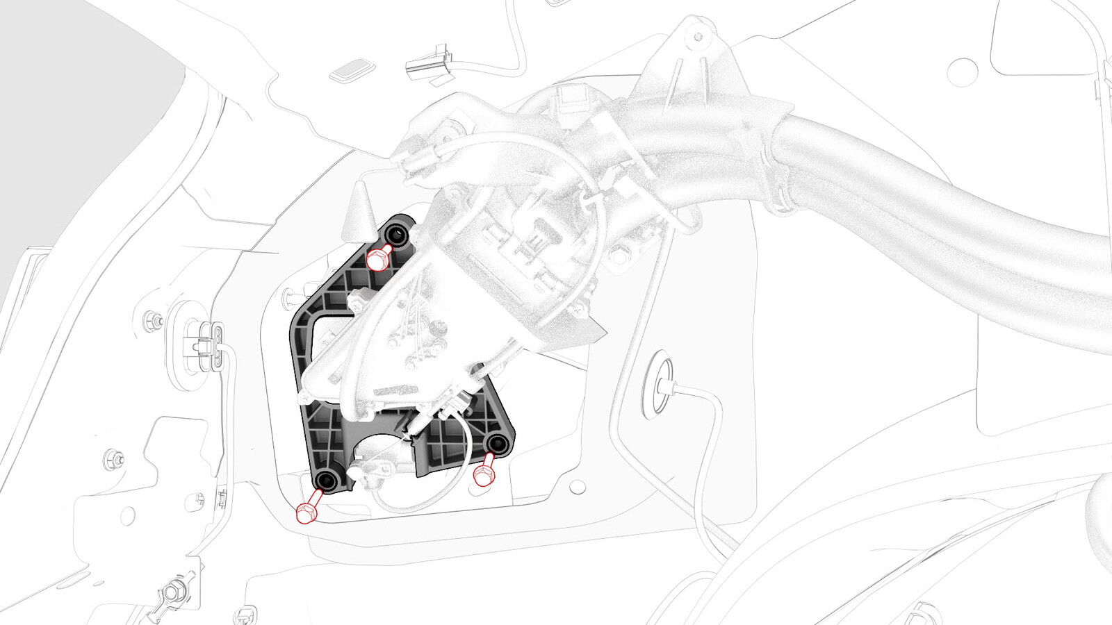 - Remove the bolts that attach the charge port assembly to the body, and then release the assembly from the body.