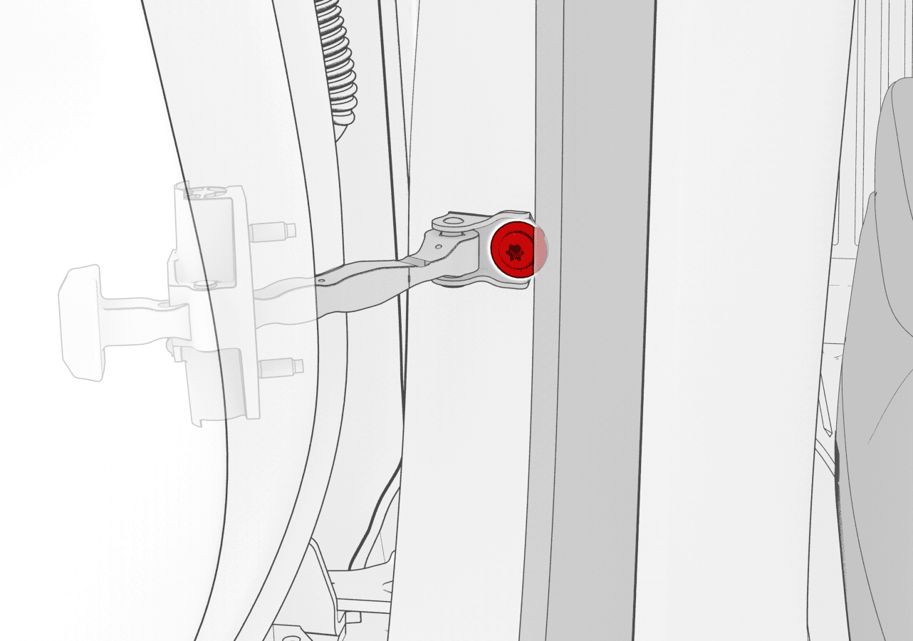 bolt that attaches the LH rear door check strap to the A-pillar body.