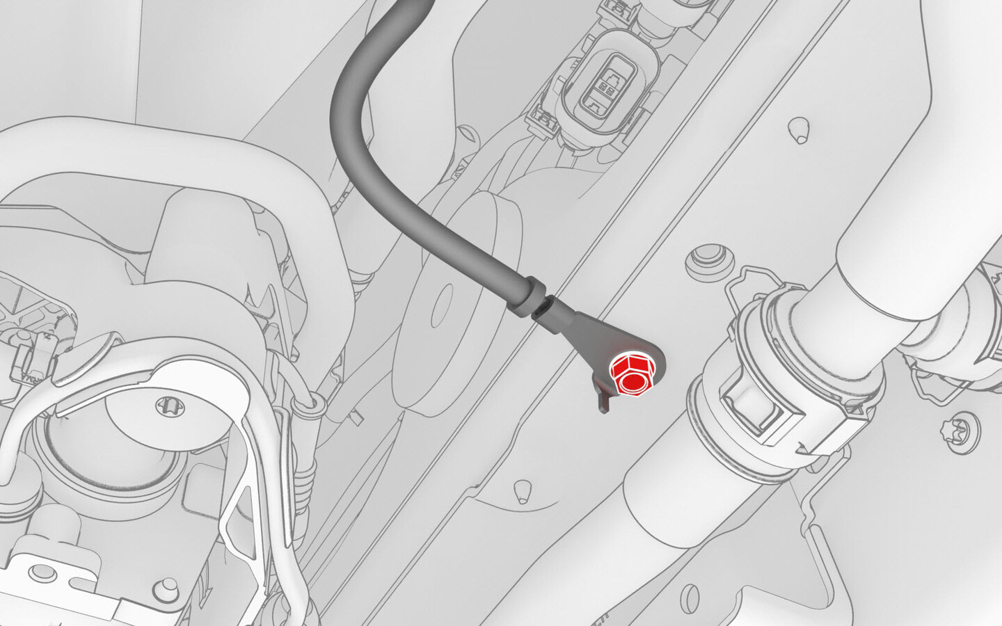 Install the bolt that attaches the front drive unit HV harness to the front drive unit.