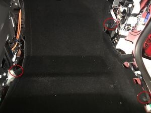 Note2x clips, Lift the center piece and pull the carpet back, Release seat harness from clips to allow the carpet to fold back more