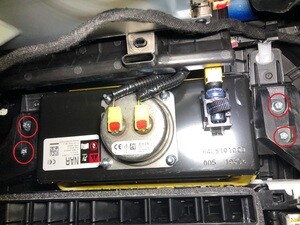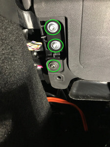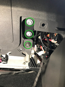 Note4x patch bolts, T30, 8 Nm, Discard after removal, 2x screws, T20, 2 Nm, Newer vehicles have 4x patch bolts, E10, Discard after removal, Support the knee air bag while lowering, The connector / harness length is very short