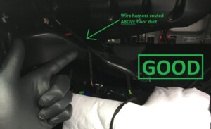 Note3x connectors, New puddle lamp harness routing prevent blocking movement of pawls, Make sure harness is routed properly above passenger footwell air duct before connecting