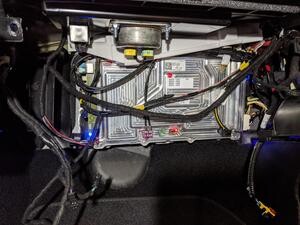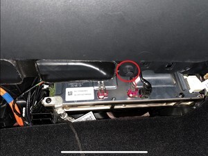 NoteWith right hand on top of car computer, and left hand under car computer use back of right hand to help push air bag assembly up and towards back of vehicle. Take care to not damage air bag connections, or wiring harnesses.