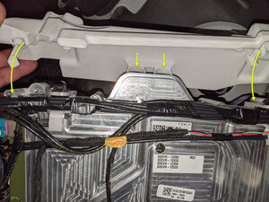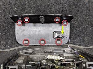 Note4x clips, 1x connector, Frunk safety switch, 3x guide tabs, Grab the closeout panel from the bottom then pull it upward to release clips