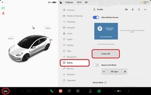 NoteVia Controls > Safety & Security > Vehicle Power > Power Off, Confirm power off at warning dialogue box