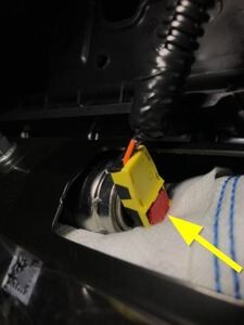 Note1x connector, Use caution not to damage the connector/harness, Support the knee air bag while connecting the connector