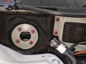 Note7x bolts, 10mm, 5 Nm, Lift up the RBN covers to access the upper fasteners, Newer vehicles may not be equipped with covers