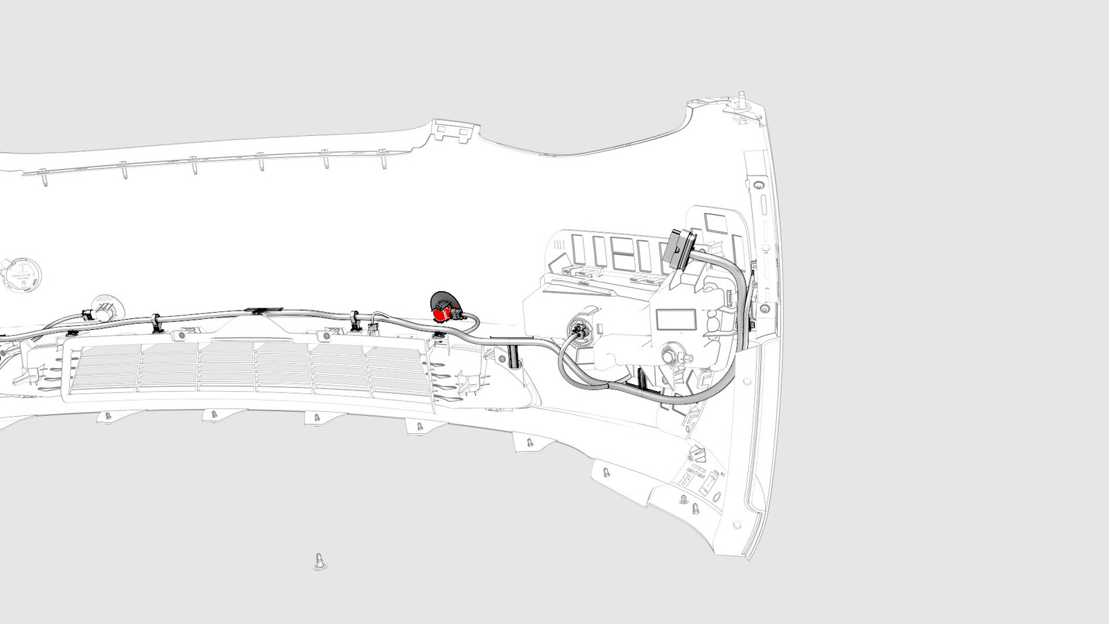 - Install the parking sensor onto the front fascia, and fasten the tabs (x2) that attach the front parking distance sensor to the front fascia.