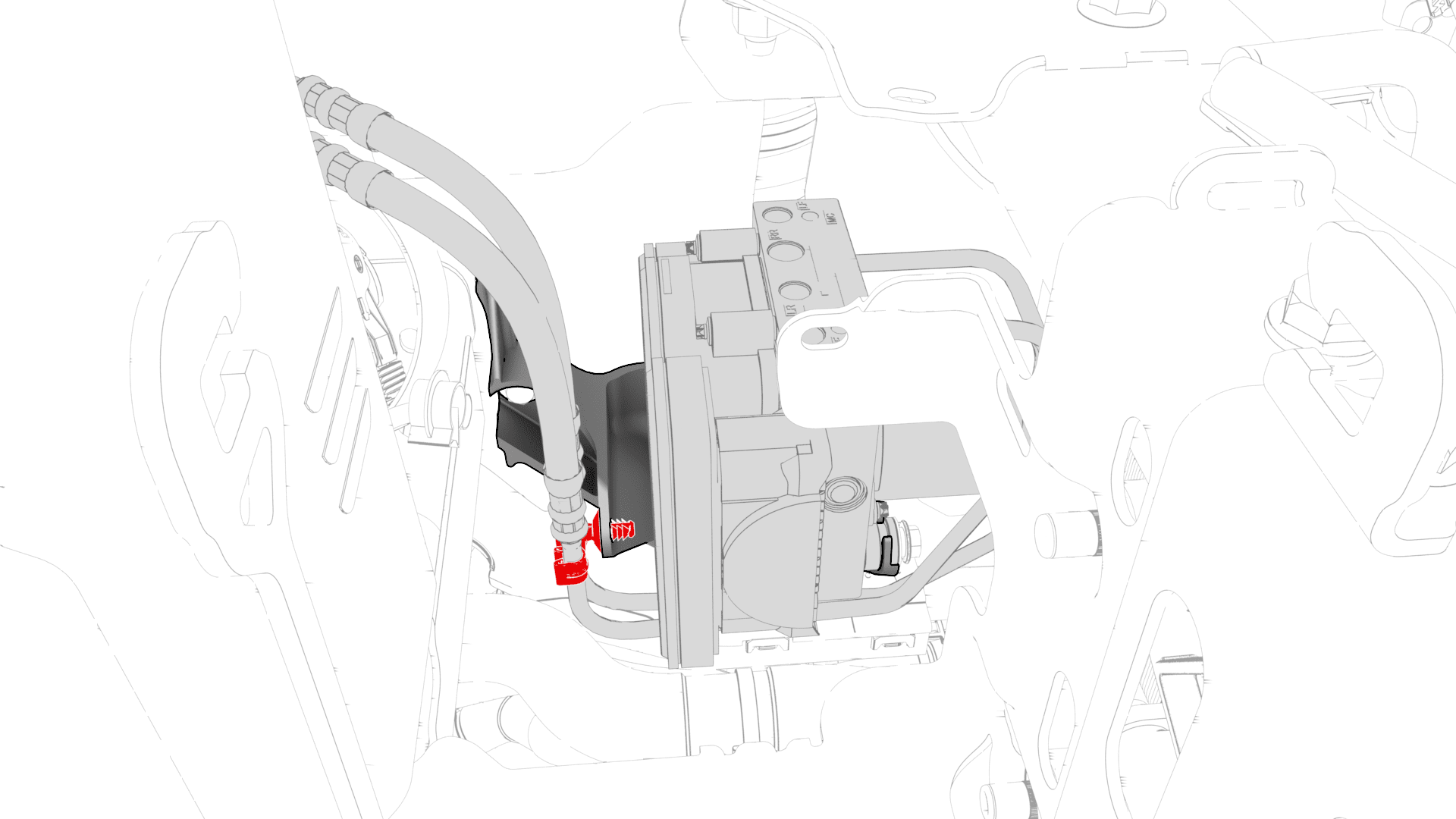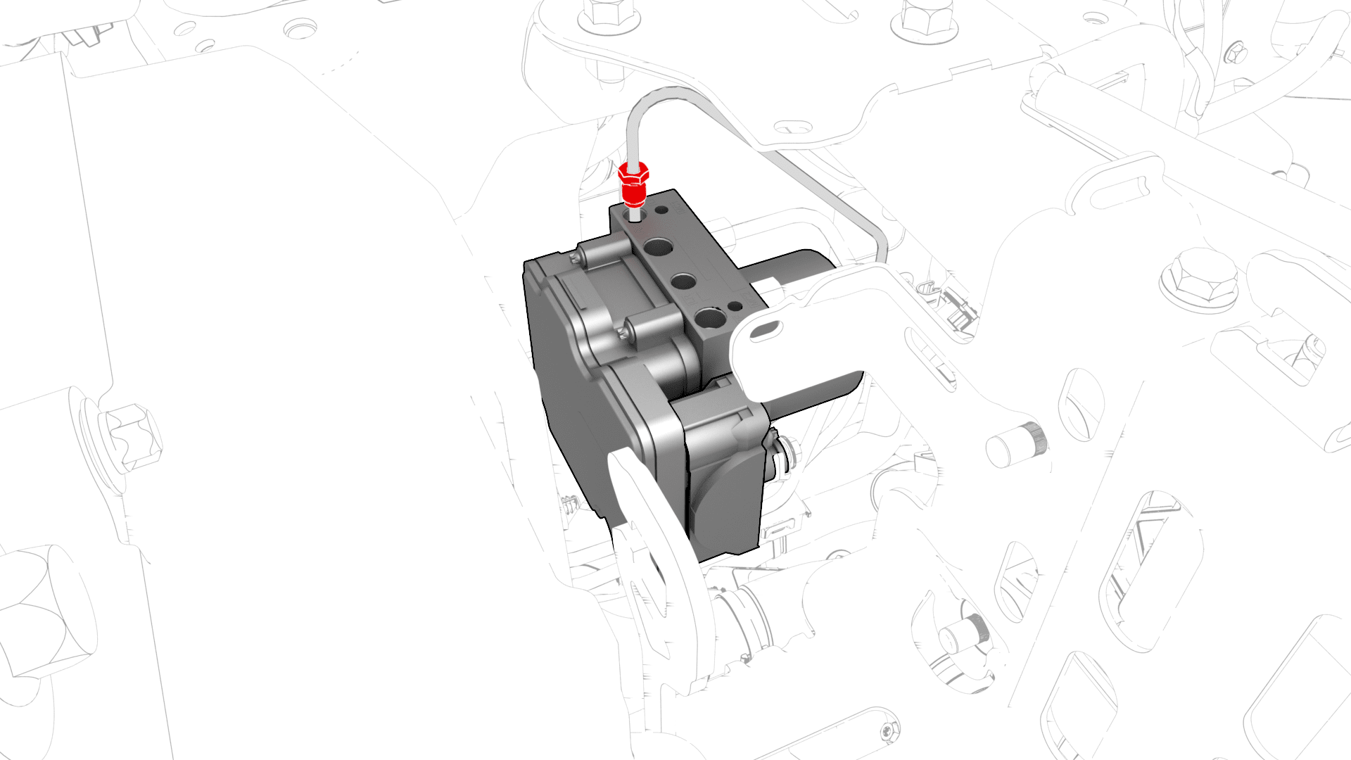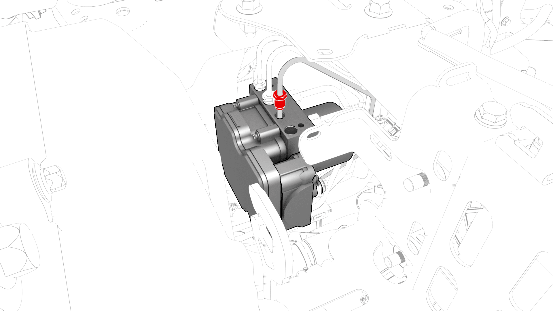 - Remove the master cylinder primary pipe nut from the ABS modulator.
