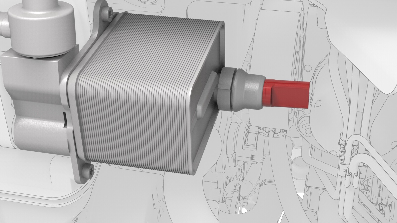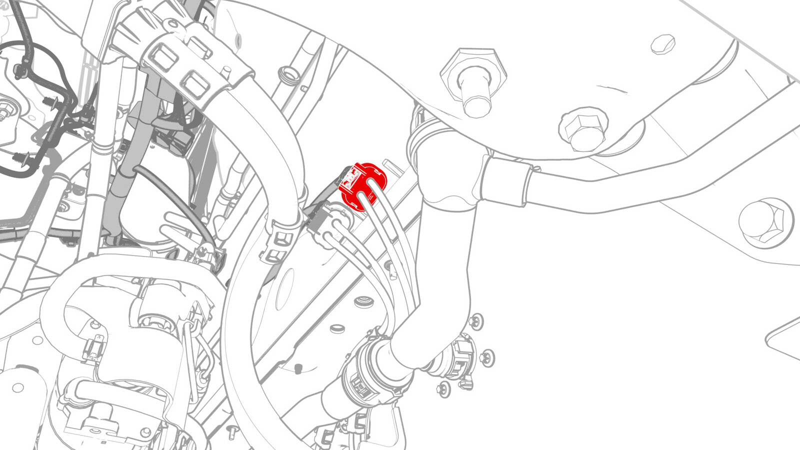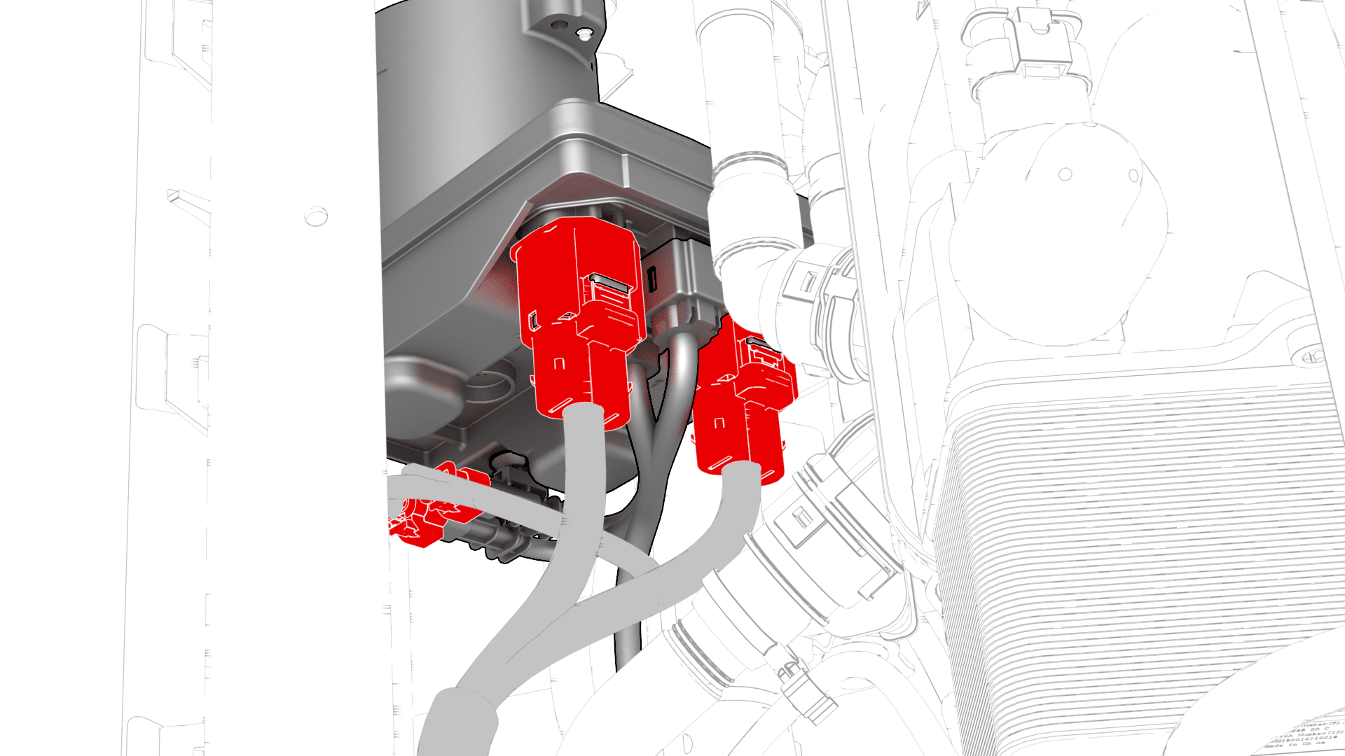 - Disconnect the electrical harness from the chiller and EXV assembly hose coolant temperature sensor connector.