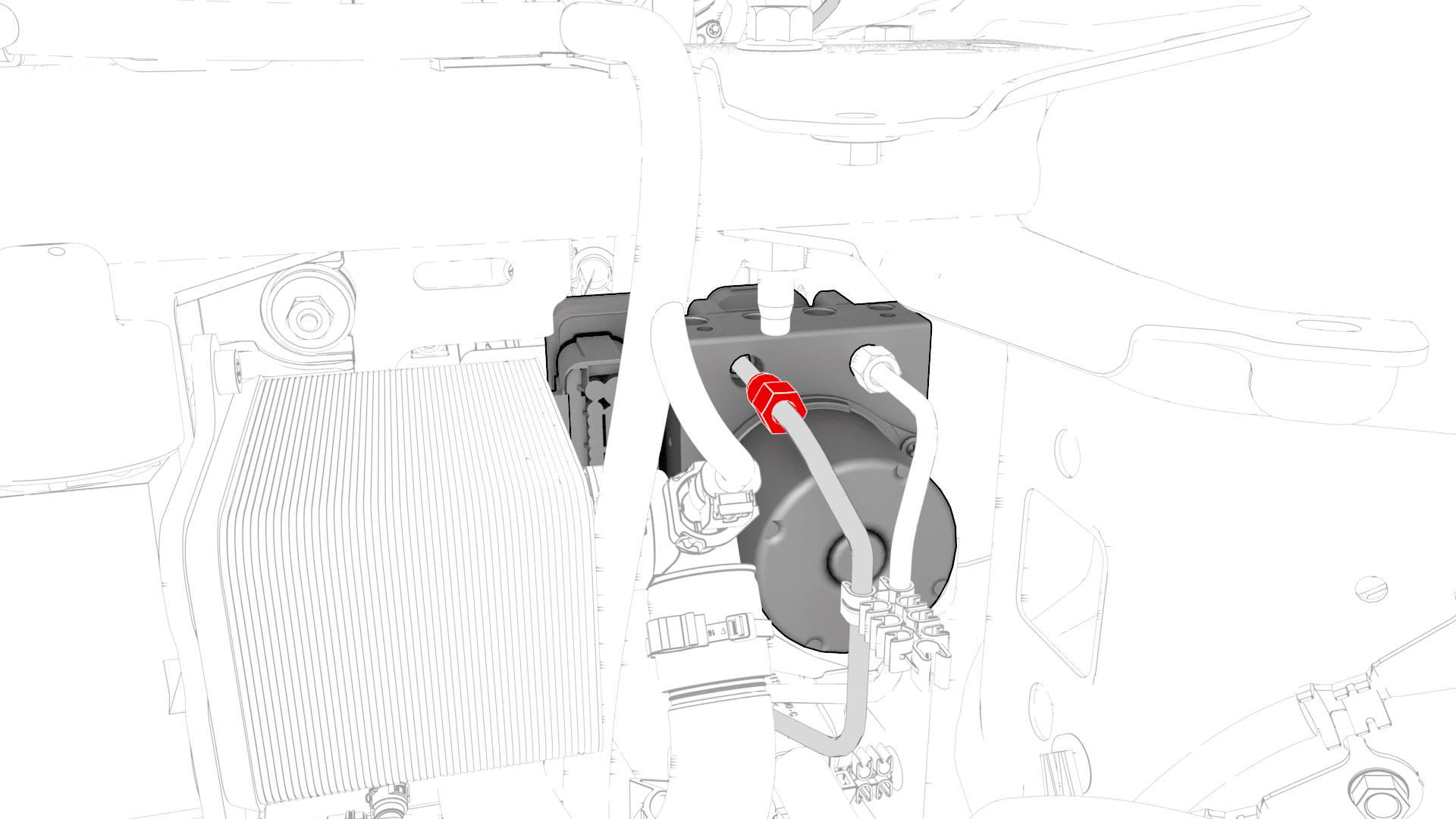 - Remove the RH front brake line pipe nut from the ABS modulator.