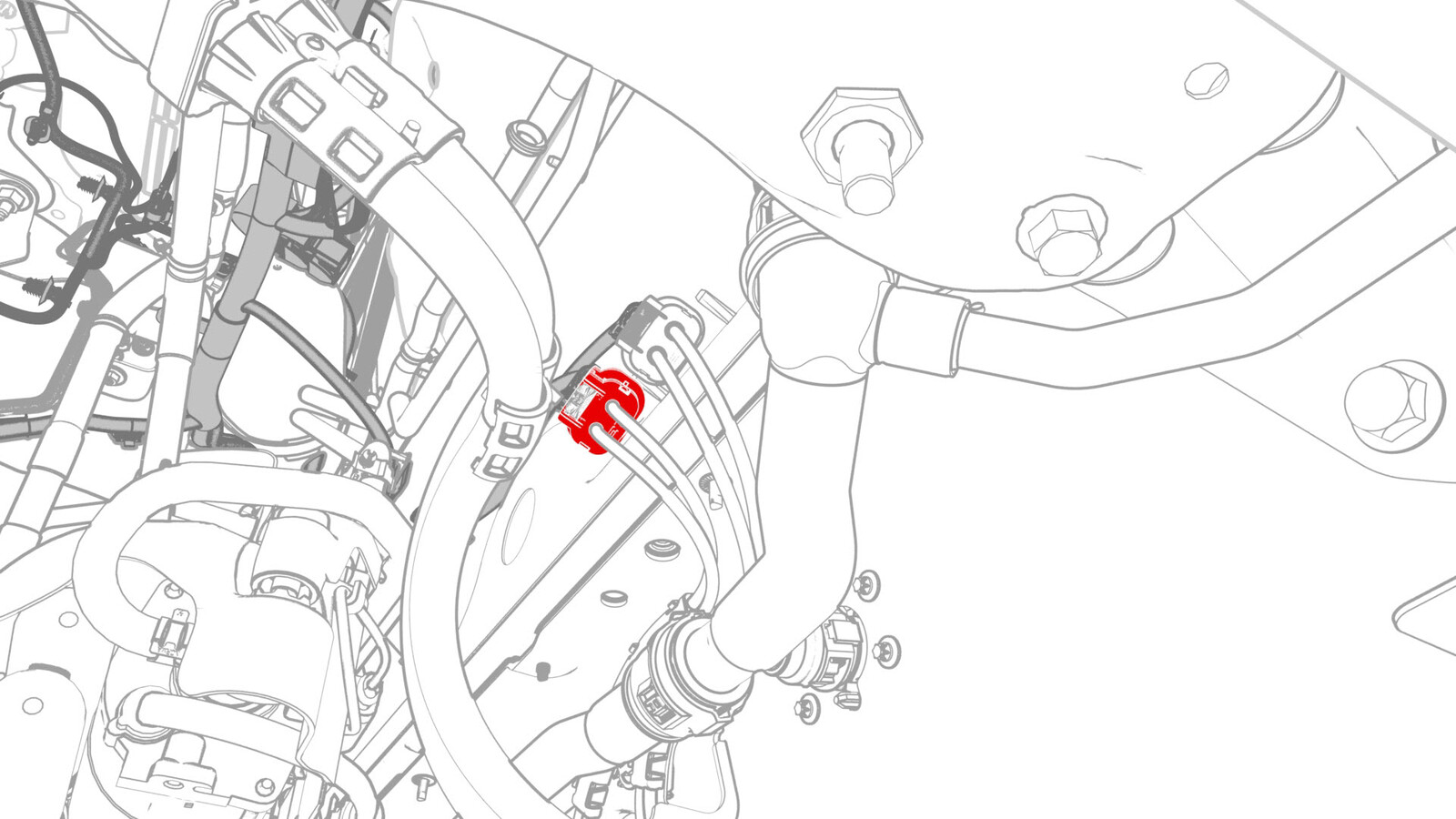 - Remove the chiller to car computer and HV battery supply manifold hose. See Hose - Chiller to Car Computer and HV Battery Supply Manifold (Dual Motor) (Remove and Replace).