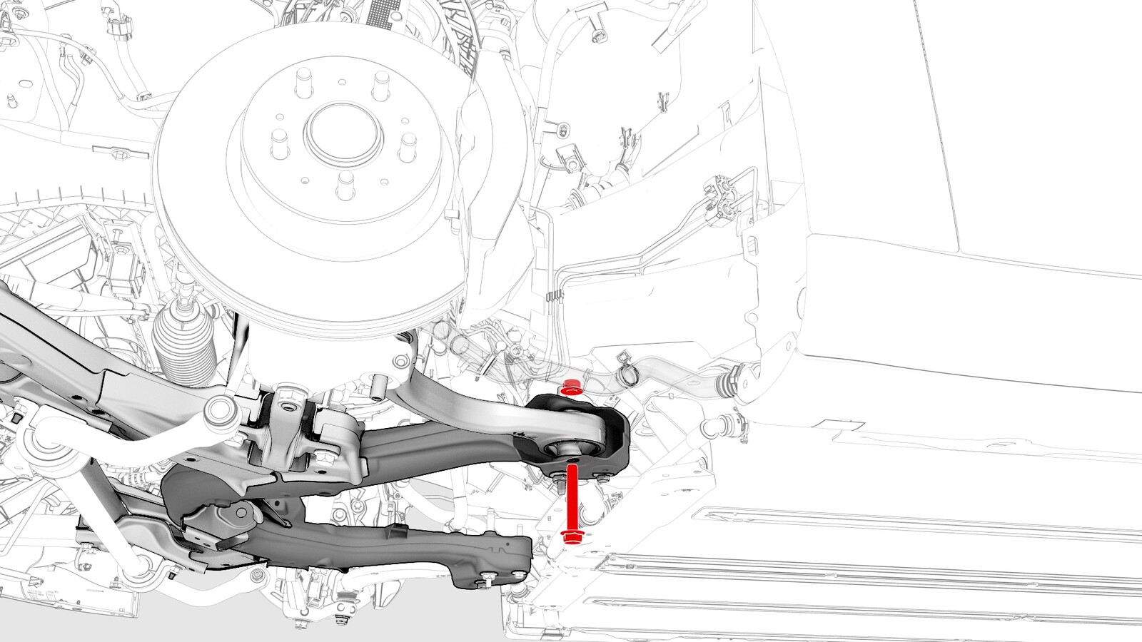 | Bolt and nut that attach the link to the front subframe |