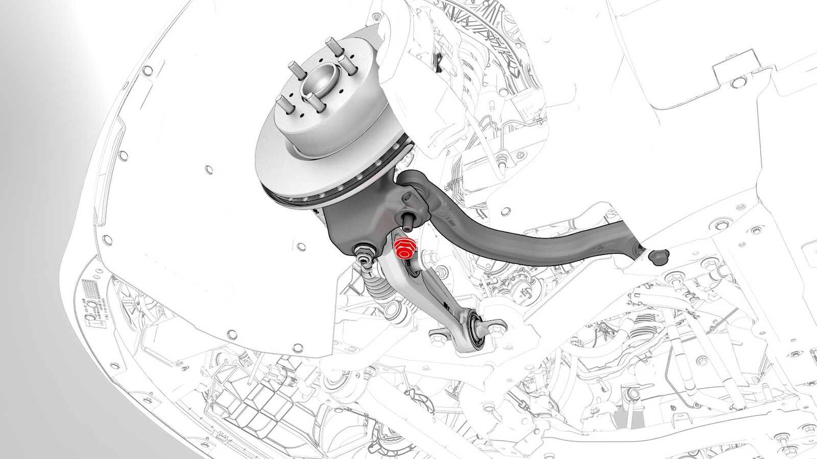 | Nut that attaches the front LH lower compliance link to the knuckle |