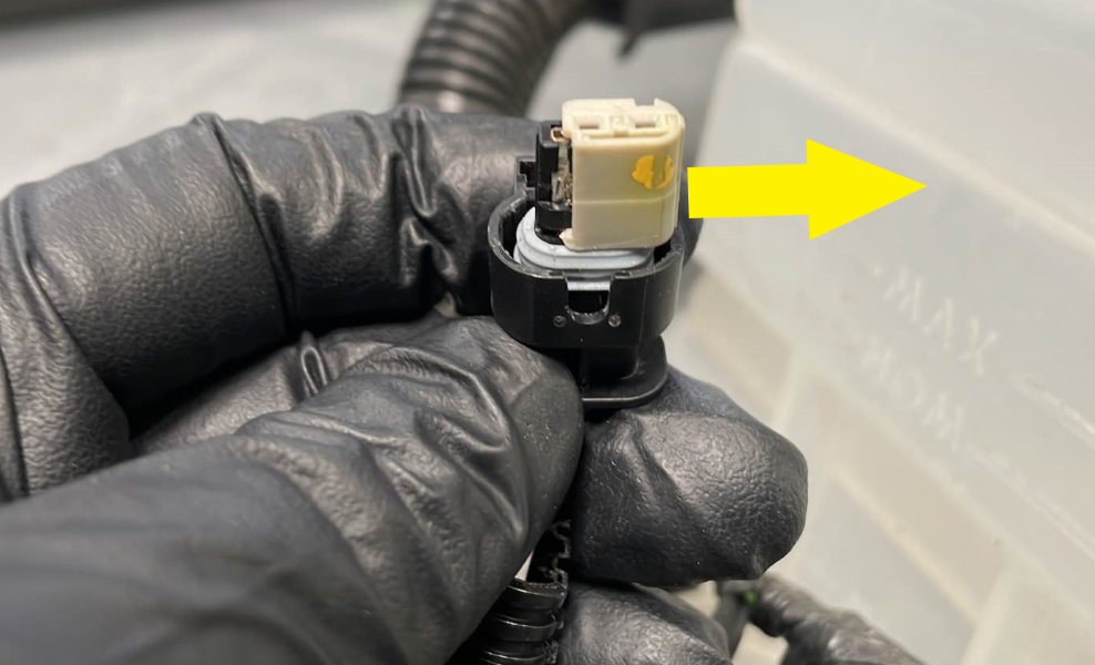 NoteHarness with purple tape connects to coolant temperature sensor closest to coolant bottle.