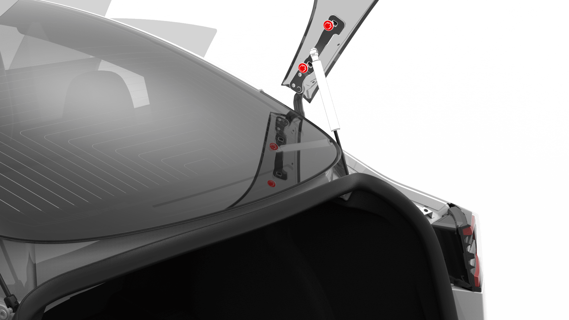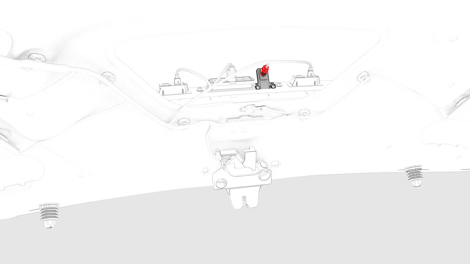 - Remove and discard the bolts (x2) that attach the trunk harness ground straps to the trunk lid.